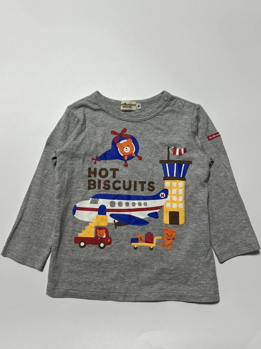 MIKI HOUSE HOTBISCUITS 飛行機グレー ロングTシャツ 90