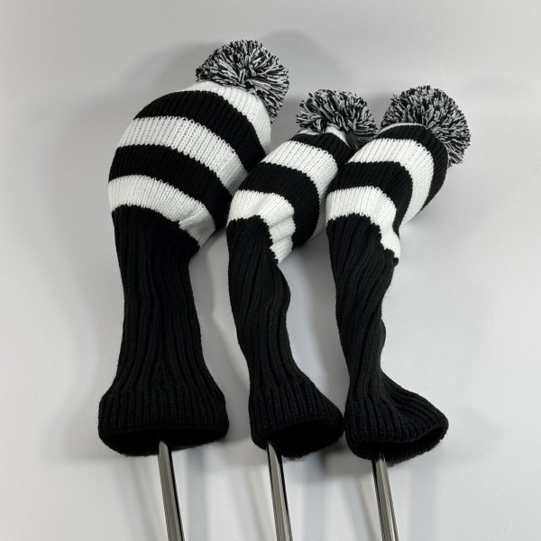 ゴルフヘッドカバー 3個 白黒 ドライバーDR用 フェアウエーウッドFW用 ユーティリティUT用 ウッドカバー クラブカバー
