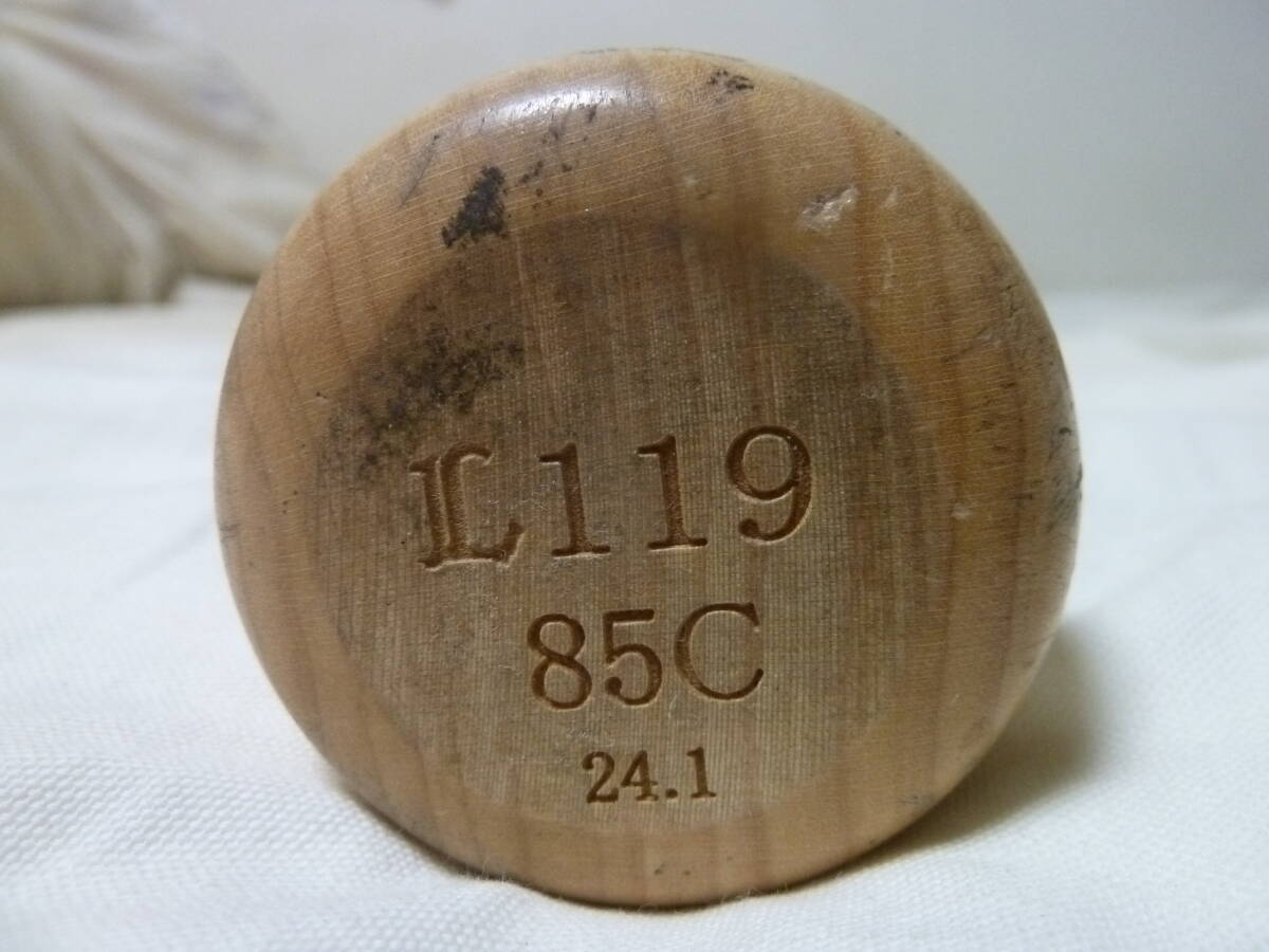 ○グリップエンドにL119と刻印があります。119番時代のバットです。バットには、日隈モンテル とネームが印字されています。