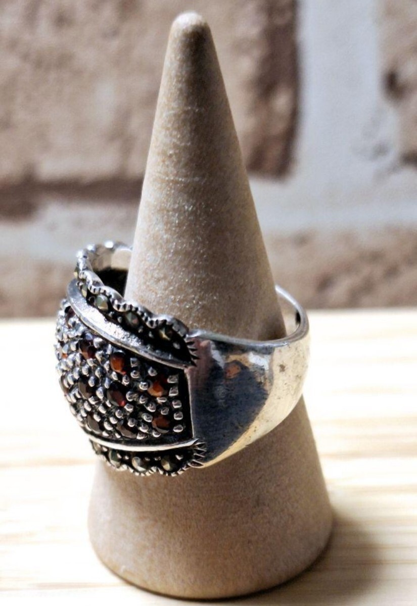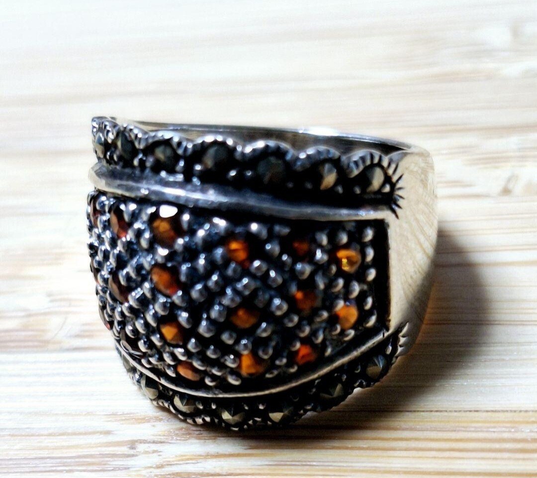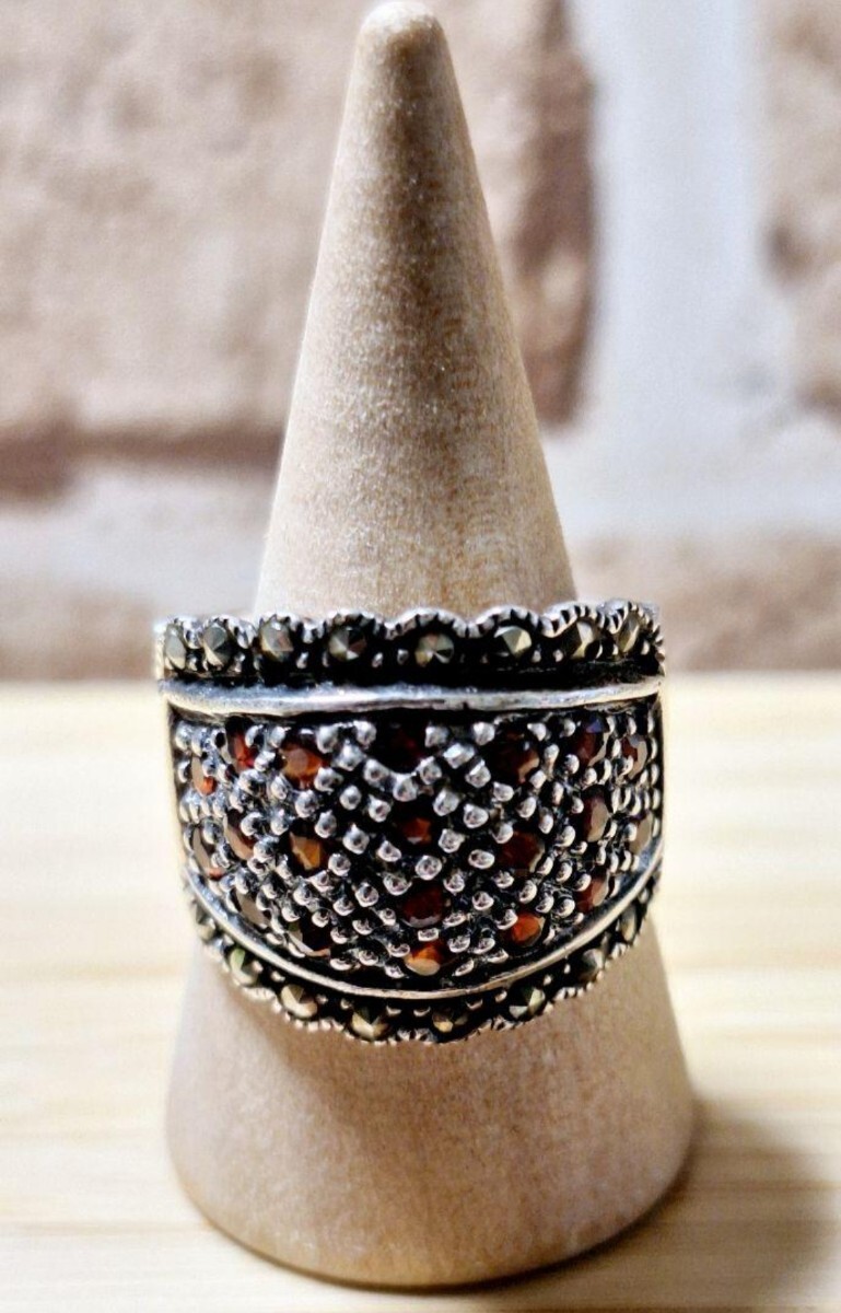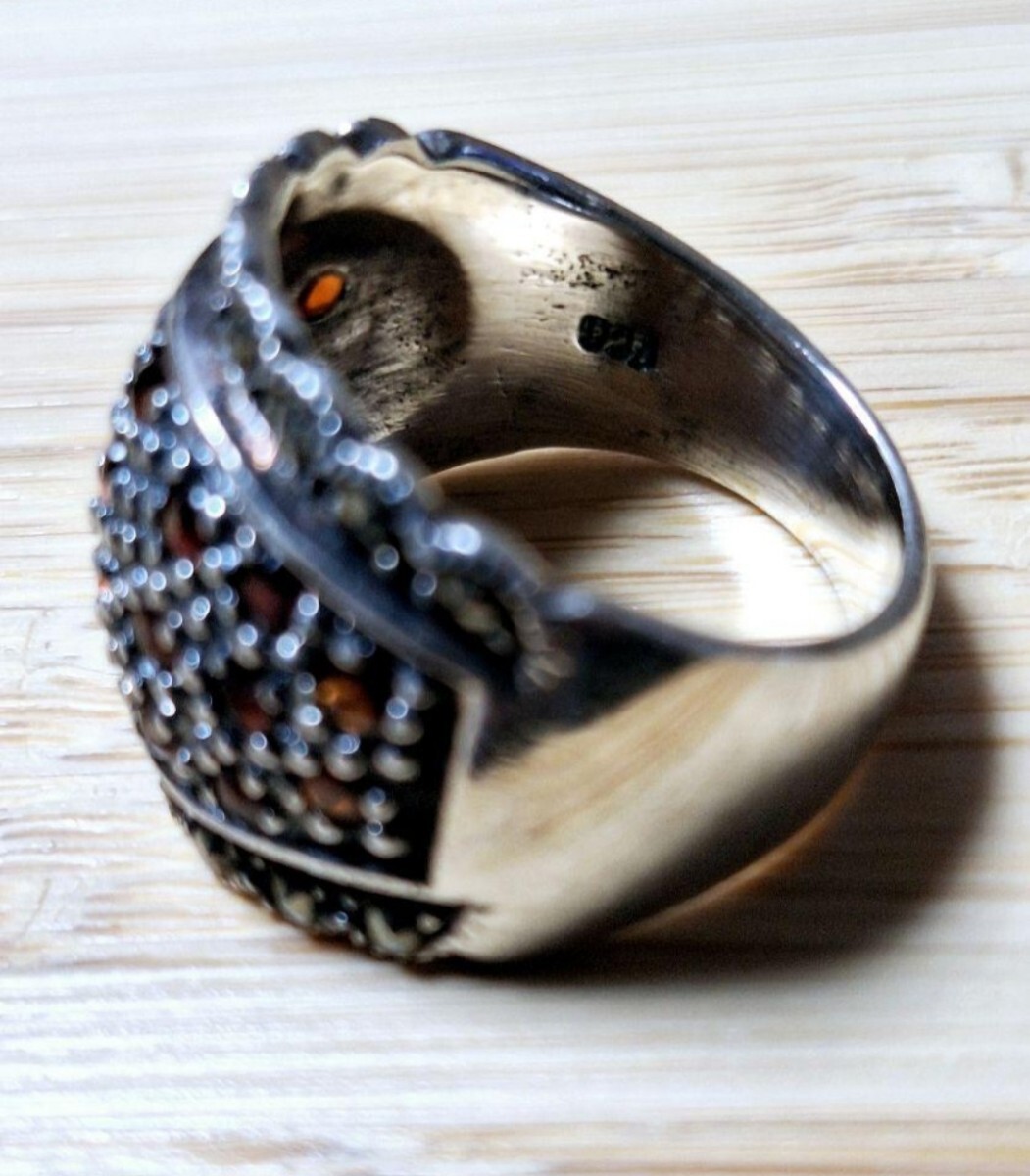シルバーリング Silver925 幅広リング 指輪 パイライト×ガーネット 17号サイズ 総重量約8g(実際は8.4g)装飾的なパターンが施されたシルバー925(刻印あり)幅広リング。パイライト×ガーネットを散りばめたデザインで男女どちらでもカッコいいリングです!