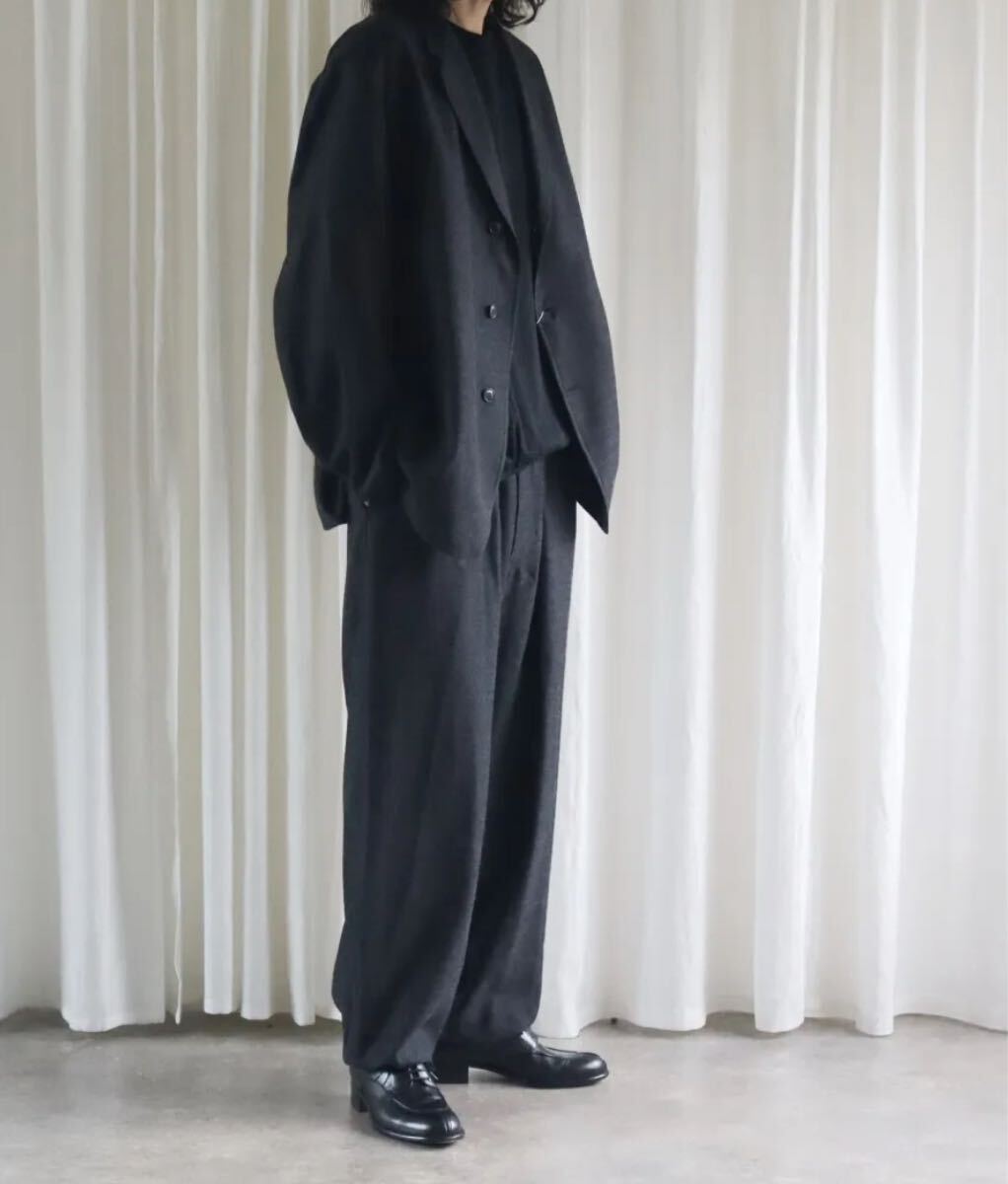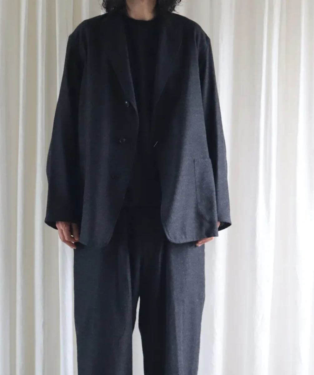独特な杢感のあるチャコールがとても美しく、軽くて暖かみのある生地感です。