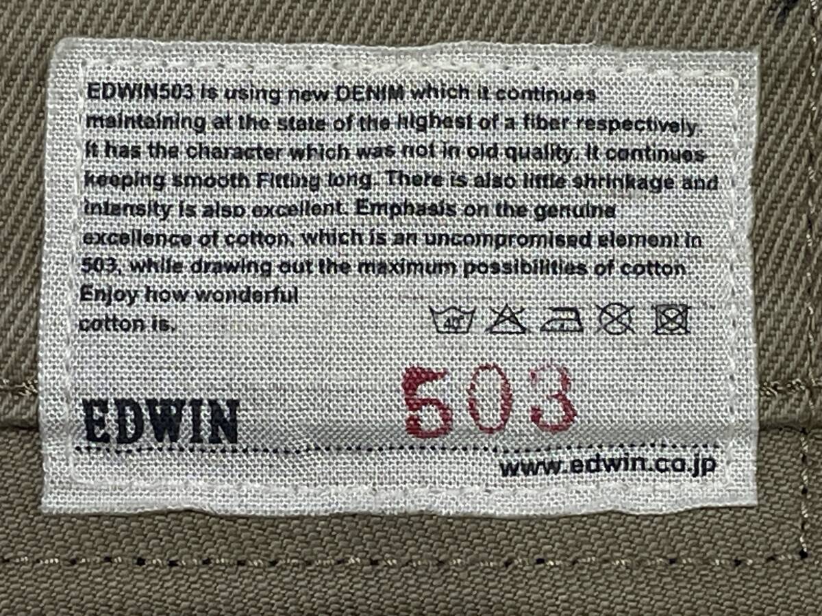 ブランド:EDWIN 型 番 :F503 カラー :ベージュ 状 態 :USED エドウィン F503 カラー デニムパンツ です。 繊維にこだわったデニムで、生地は滑らかでしなやかな風合いを保ち、縮みも少なく、抜群の伸縮性を持つパンツに仕上げた日本製デニムパンツです。 ストレッチが効き履きやすく、状態、色残りも良い、これから長く付き合える品です。お探しの方お勧めの1本です。 ■サイズ:製品表記 W30 ■サイズ:実寸(平置き) ウエスト 39.0cm (×2=約78cm) W31相当 股下 73.5cm 股上 26.5cm ワタリ 28.5cm すそ幅 21.0cm | ||