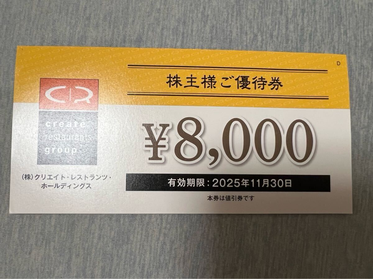 クリエイトレストランツ 株主優待券 8,000円分(4000円券×2枚)の出品です。