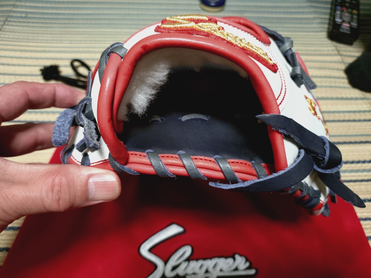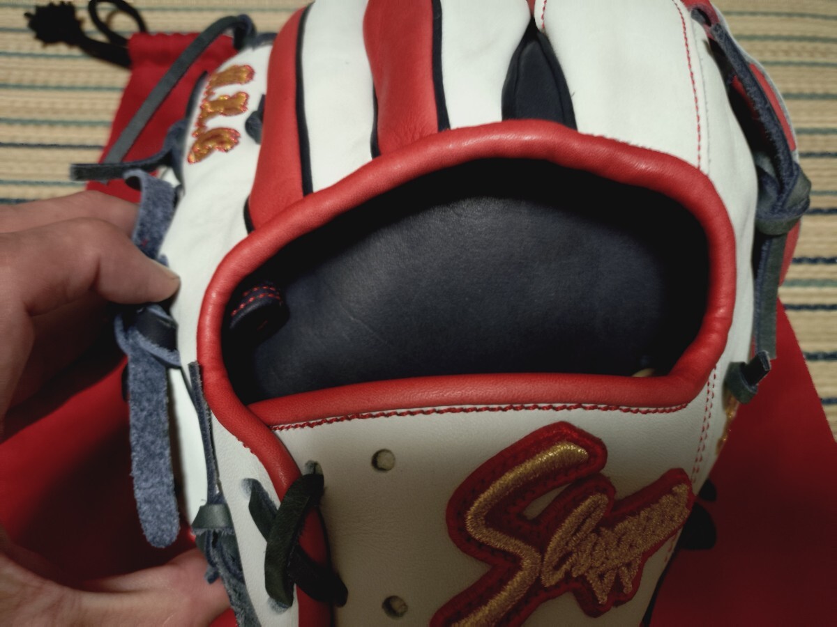 別のサイトでの購入であり、親指と小指に刺繍があります。