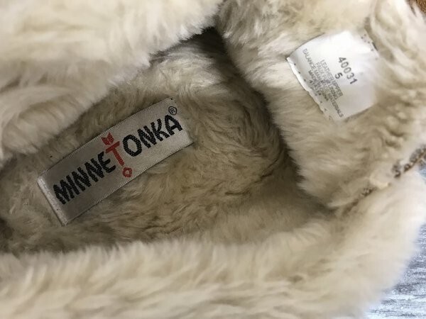 MINNETONKA ミネトンカ レディース スウェード ファー モカシン キャメル です。