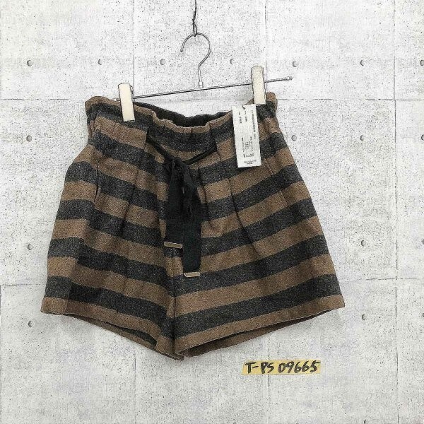 新品タグ付き!mystic ミスティック レディース 起毛 ウール混 ボーダー リボン付き ショートハーフパンツ F ベージュ・グレー です。