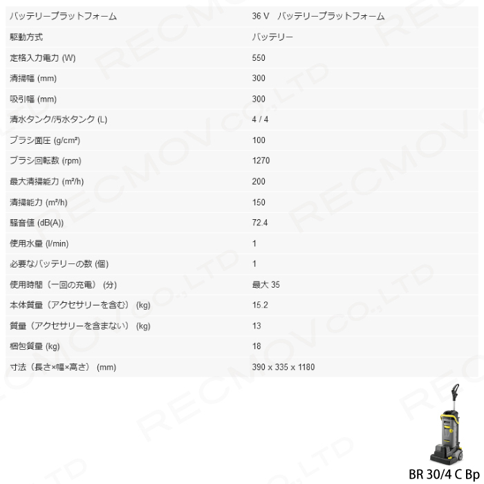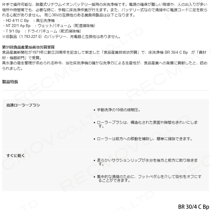 ケルヒャー 手押し式床洗浄機 BR 30/4 C Bp 1.783-234.0