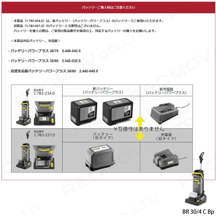 床洗浄機 ケルヒャー 業務用 小型 BR 30/4 C Bp 1.783-234.0 手押し式 バッテリー式 バッテリー・充電器別