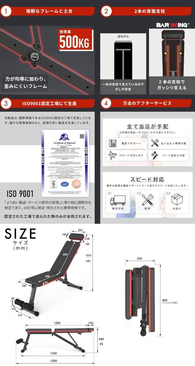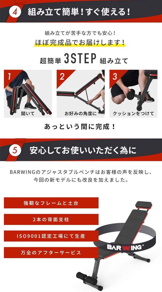 バーウィング 可変式 トレーニングベンチ 4WAY インクラインベンチ 折り畳み デクラインベンチ フラットベンチ 角度調節簡単