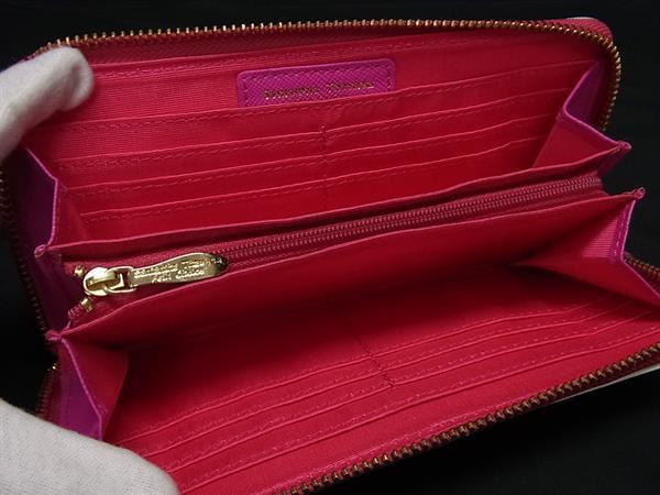 ■美品■Samantha Thavasa サマンサタバサ プチチョイス レザー ラウンドファスナー 長財布 ショッキングピンク系×ホワイト系 DI7460