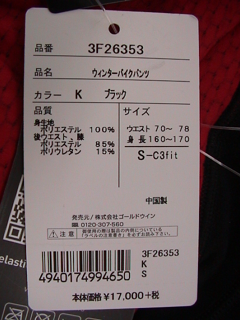 シースリーフィット C3fit ウィンターパンツ 3F26353 Sサイズ ウエスト70-78cm 新品 未使用