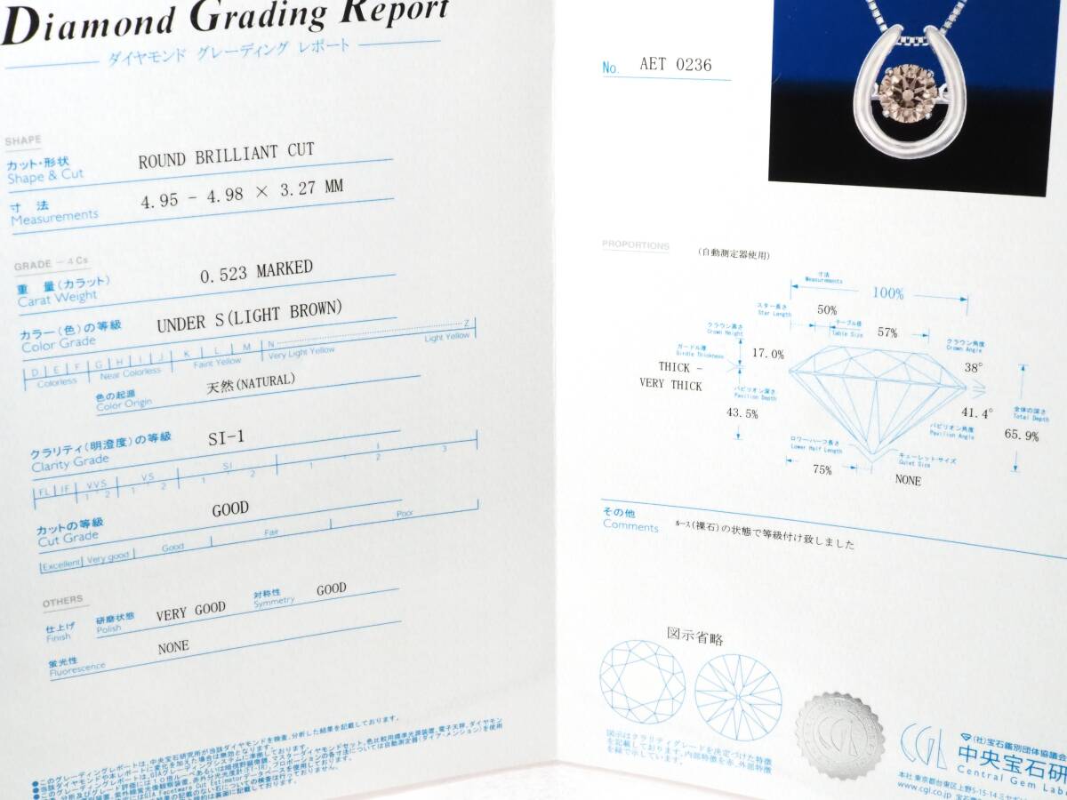 鑑定書付 天然ダイヤモンド S/SI-1/GOOD/0.523ct/3.1g/Pt900/Pt850 ダンシング ネックレス