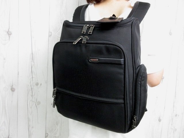 【ブランド】TUMI トゥミ 【形】バックパック リュックサック 開閉ファスナー・外ポケット4・内ポケット1(クッション性のある電子機器収納ポケットあり) 【素材】ナイロン×レザー 【色】ブラック 【A4収納】可 【サイズ】横底約29×縦約38×幅約8×ハンドル約18×ショルダー最大約92センチ 【付属品】ネームタグ 【状態】 ⑨極美品 未使用品ではないのでスレ汚れなどあるかもしれませんが、素敵なバッグになります。 ※できる限り写真に載せておりますのでご参考ください。 ※※※状態の詳細※※※ ⑩新品・未使用 ⑨極美品 ⑧美品 ⑦一般的な使用感でも美品に近い ⑥一般的な使用感 ⑤多少使用感あり ④使用感あり ①~③ジャンク品・リペア必要 | ||