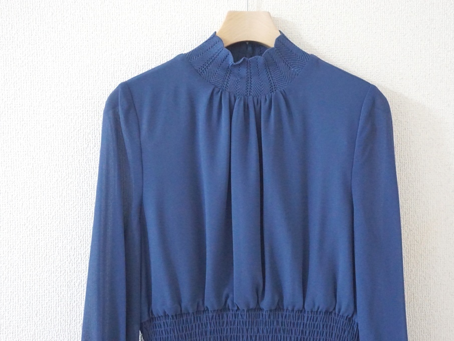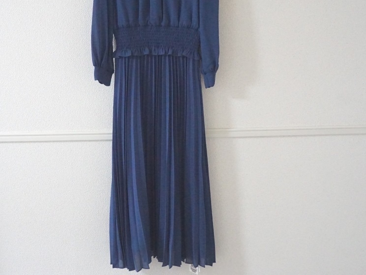 公式HPより | 【デザイン】 シフォンプリーツの女性らしいワンピース。 ウエストリブデザインで、すっきりとしたシルエットに仕上げました。 ひらりと揺れるマキシ丈の上品なアイテム。 ポケットなし 【生地感】 さらりとした生地を使用しています。 |