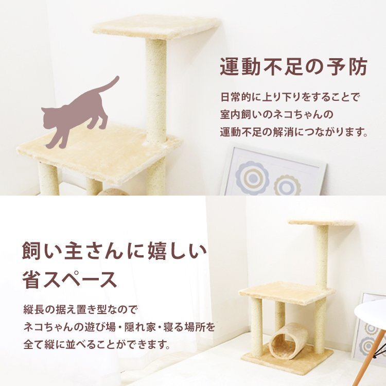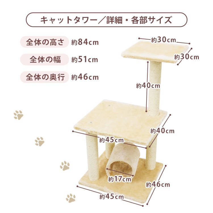 上下運動でストレス解消! 長ーく使える置き型タイプのキャットタワー!! 支柱は爪とぎできるタイプでネコちゃんのストレス解消に。 トンネル付きでゆっくりとくつろげます! ★Point1:すぐに設置できる イラスト説明書付で誰でも簡単に組み立て可能! ★Point2:運動不足予防に 日常的に上がり下がりをすることで、室内飼いのネコちゃんの運動不足解消につながります! ★Point3:高い場所に上がれる ネコちゃんは高くて狭い場所もお気に入り♪ 高い場所から外の景色を眺めたりするのもストレス発散に繋がります。 ■商品コード:PT0011A ■商品仕様 カラー:ベージュ サイズ(約) 全体:幅51×奥行46×高さ84cm ※最大サイズ 台座:幅45×奥行46cm 重量:(約)7kg 耐荷重:(約)15kg 材質:紙管、麻、パーティクルボード 他 ■内容 ・キャットタワー本体 ×1(組み立て必要) ・組み立て用工具一式(ボルト、六角レンチ) ■注意事項 ・組み立て式(未完成品)です。 ・製品は接着剤や麻の臭いがすることがあります。臭いが気になりましたら、風通しの良いところで陰干しして下さい。 ・凸凹のある床、柔らかい材質・滑りやすい場所では倒れたりする危険がありますので設置しないようお願いします。 ・麻の材質上、繊維クズが出ますが不良ではございません。 ・大型商品なので大人2人以上での組み立てをお勧めします。 ・写真と実物は多少異なる場合がございます。あらかじめご了承下さい。 ■保障期間 7日間 ※商品到着後7日以内の初期不良・破損のみご対応させていただきます。 【新品未使用品です】 |