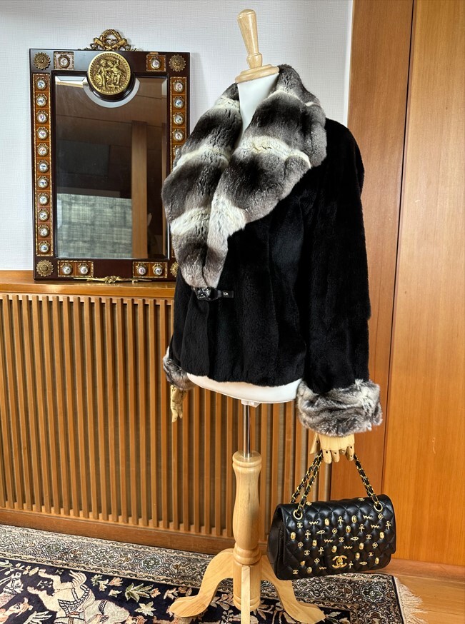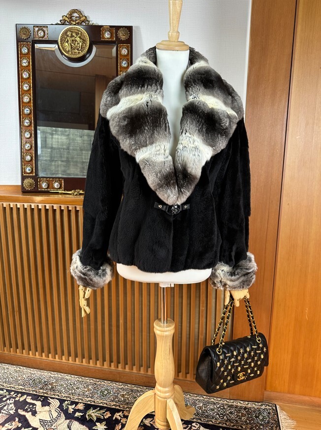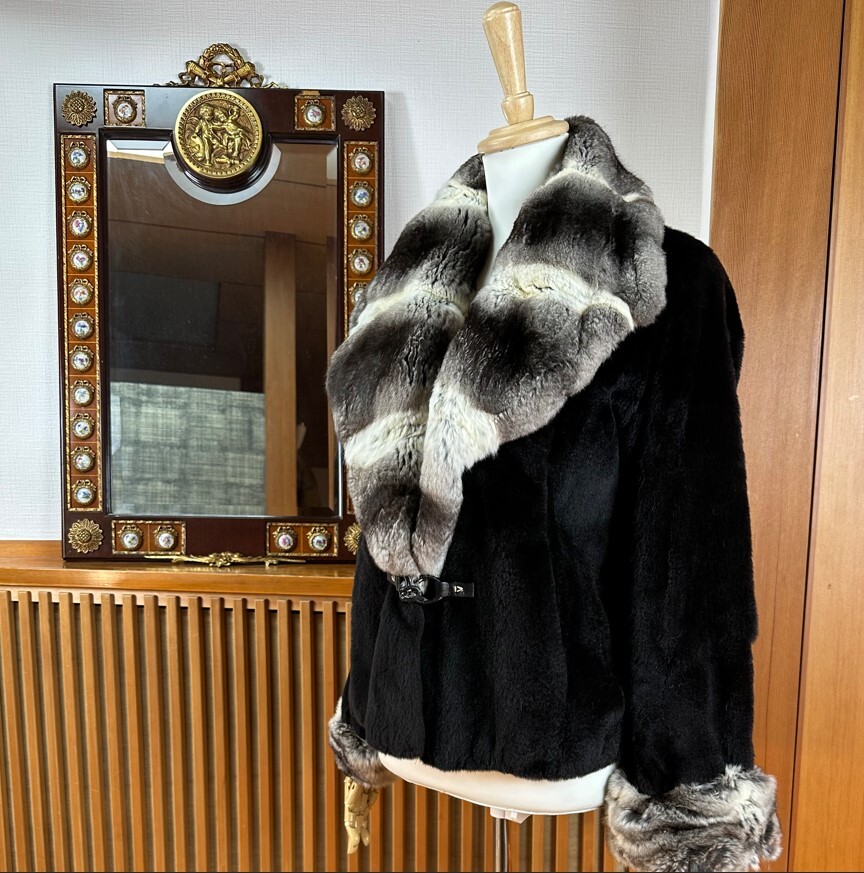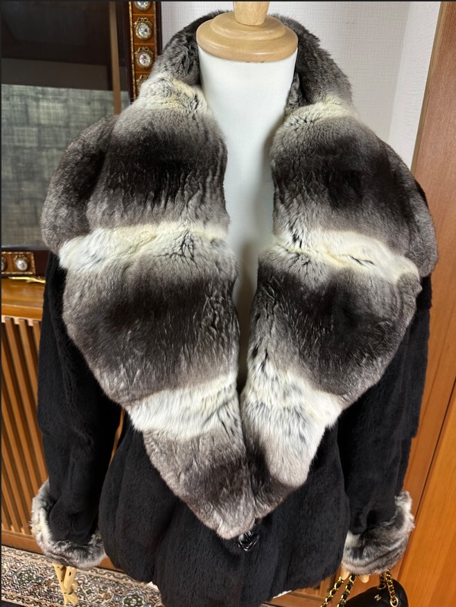 イタリア製!チンチラの大きなお襟とシェアード毛皮のジャケット!