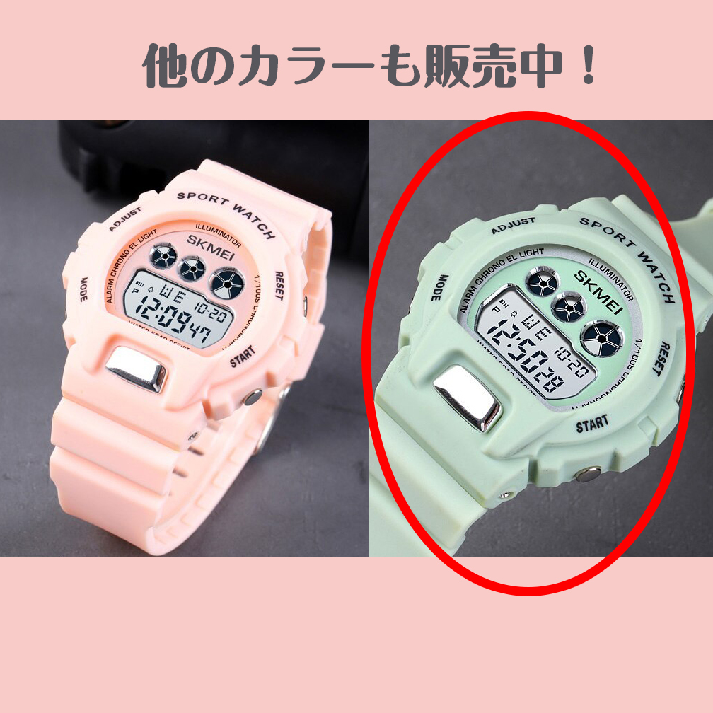 韓国スタイル 丸型レディースデジタル時計 かわいいオルチャン ペールグリーン くすみグリーン キッズ(CASIOカシオG-SHOCKではありません)