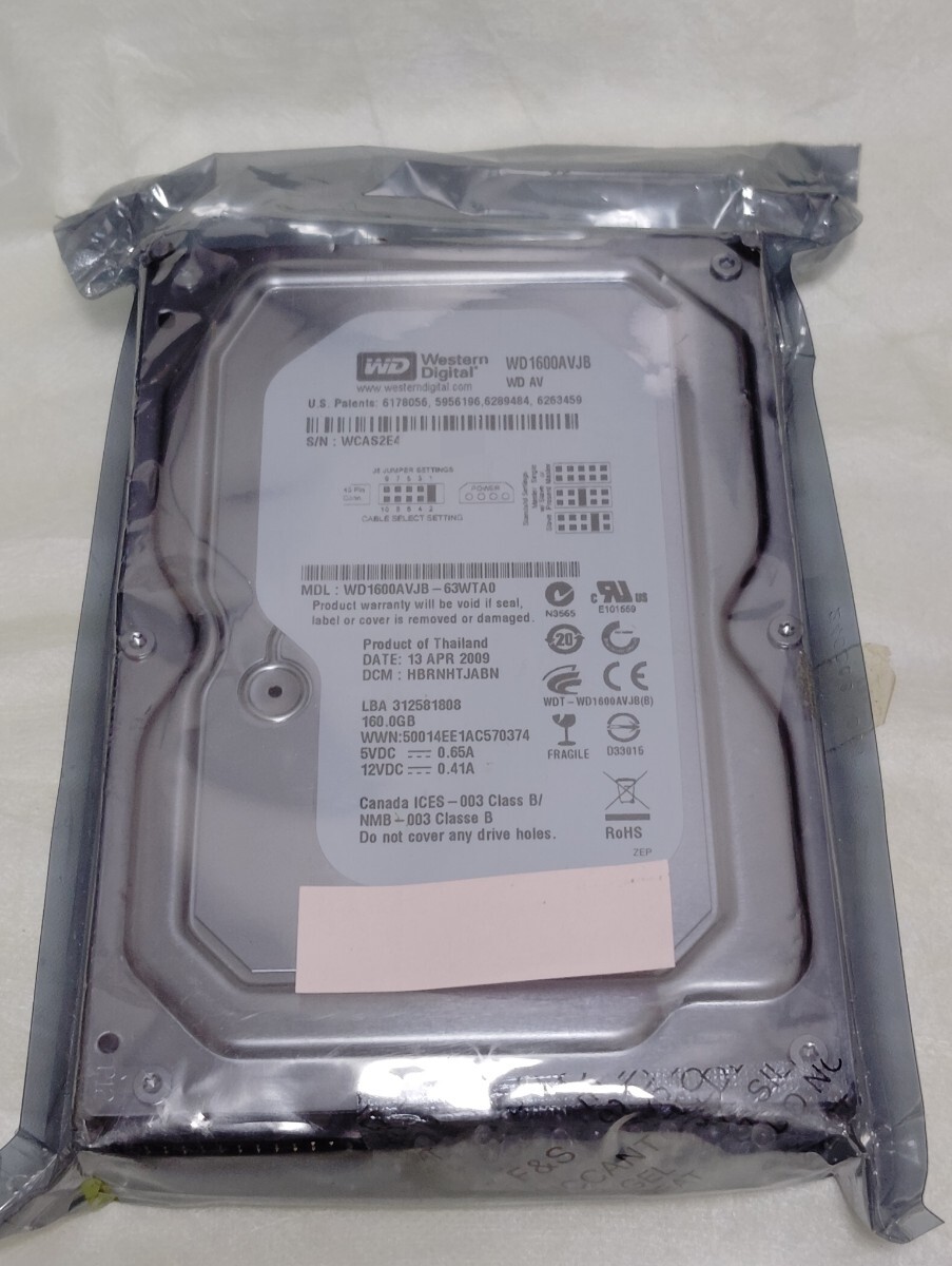 Western Digital製の160GBのストレージ容量を持つWD1600AVJBモデルのパラレルHDD。