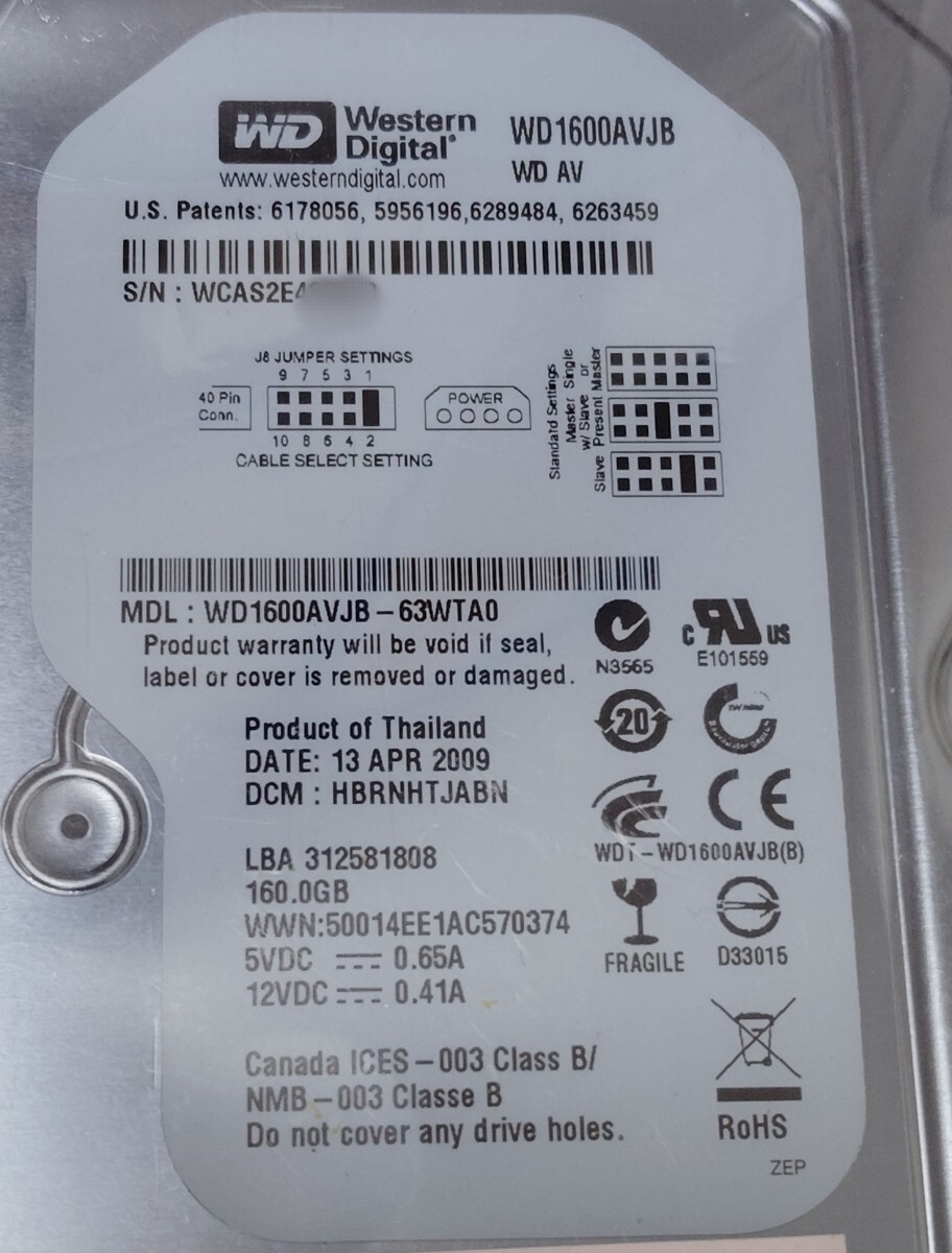 - モデル: WD1600AVJB