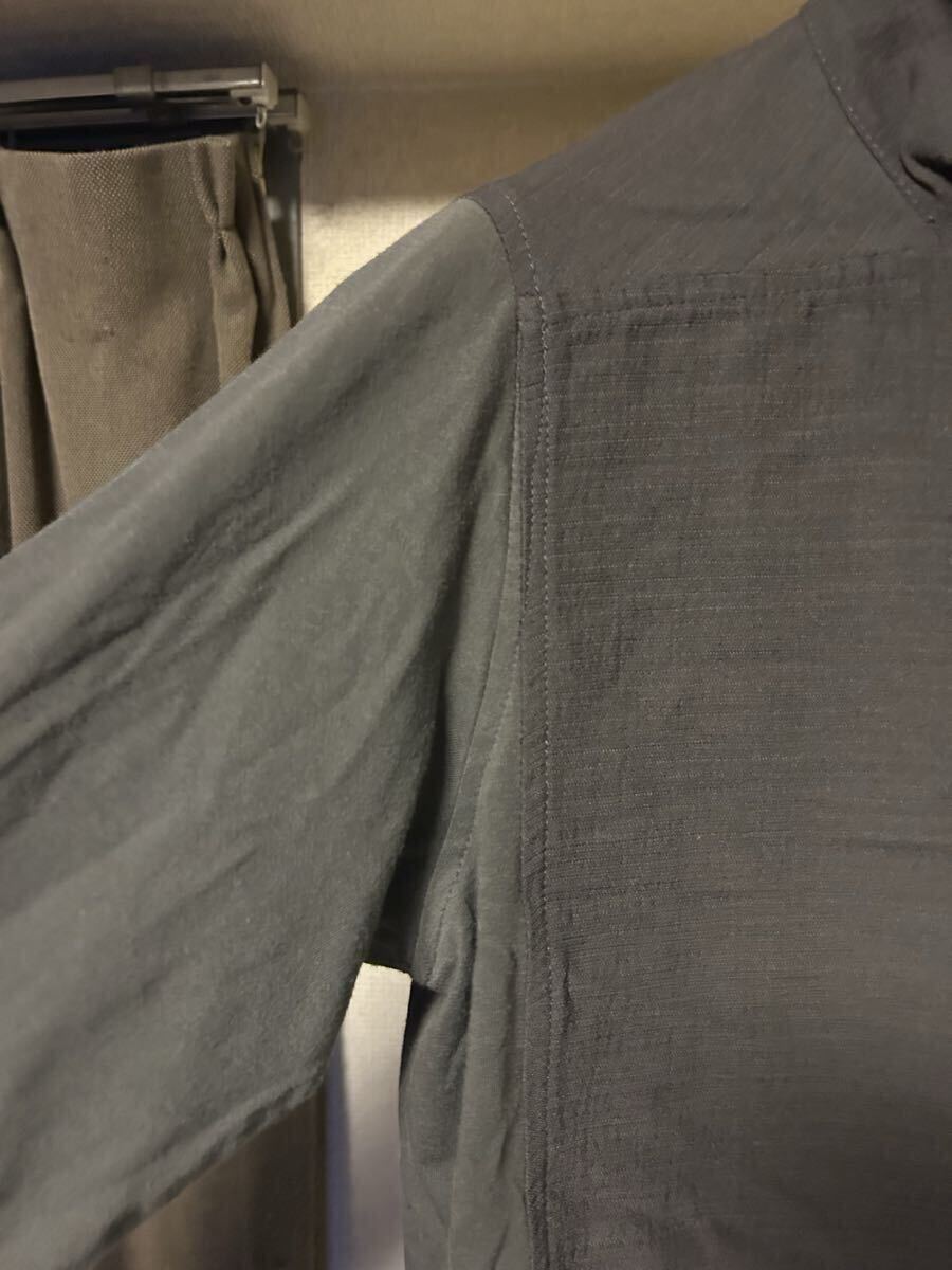 ハイネックは後ろで開閉できるタイプでボタンではなくマジックテープになります。