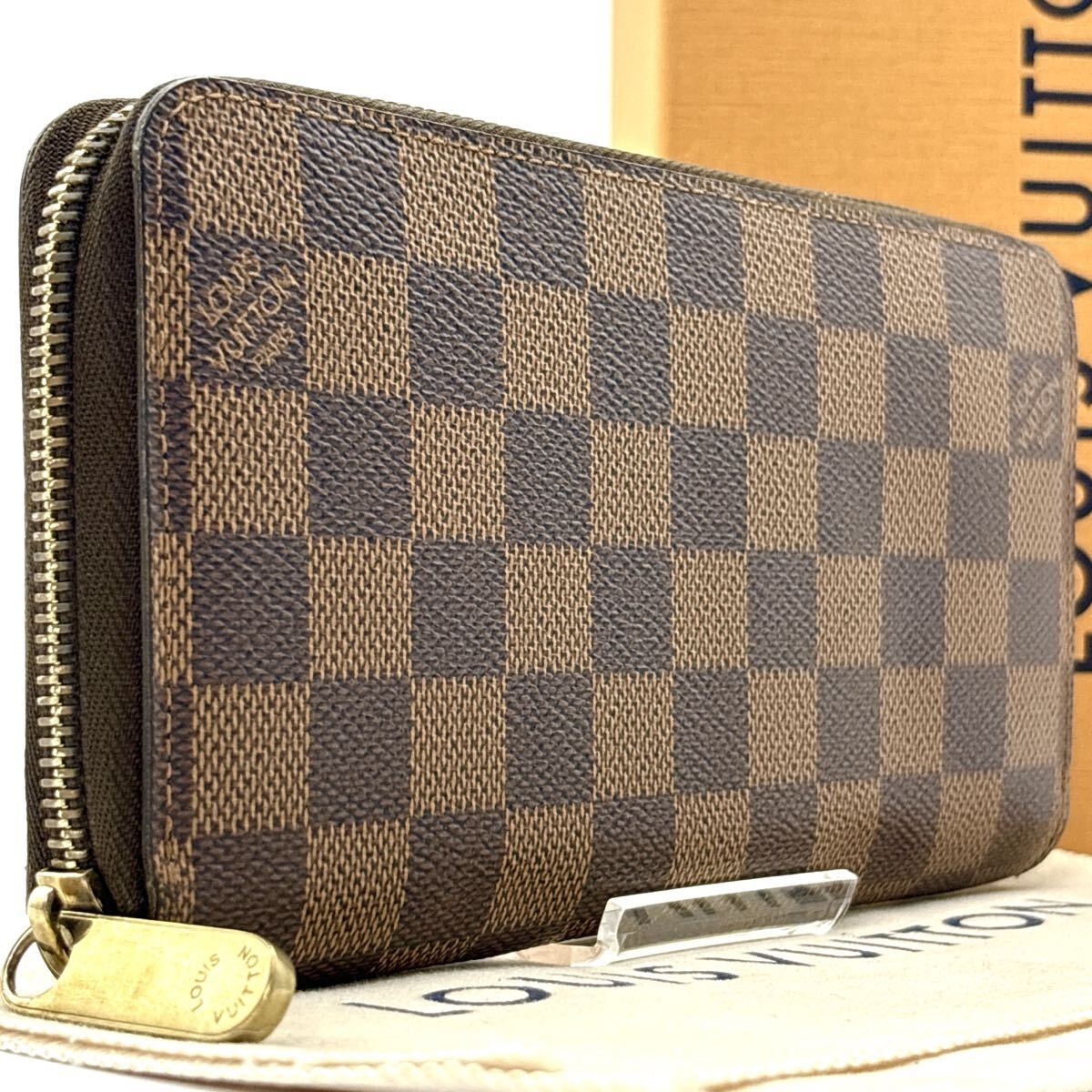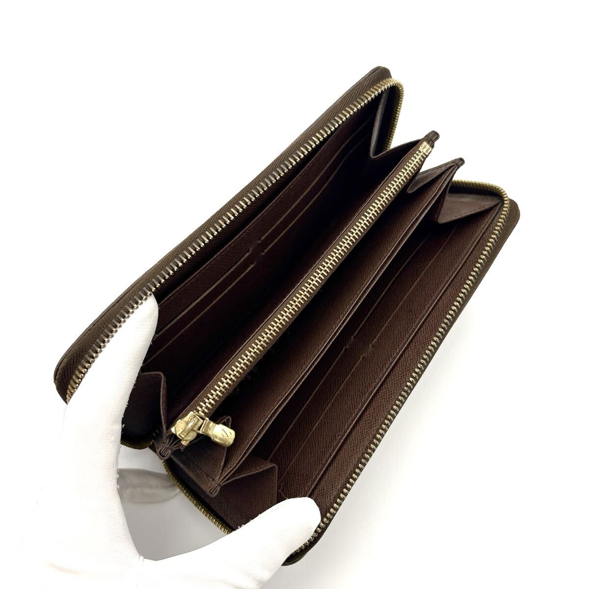 極美品◆LOUIS VUITTON ルイヴィトン ジッピーウォレット ダミエ エベヌ 長財布 ロングウォレット ブラウン メンズ レディース