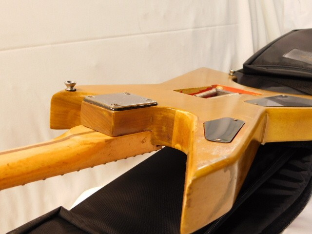 ・全体的にキズ、汚れ、スレ、ホコリあり。 ・ペグ、ブリッジ、ボディ裏側のプレート?に緑青があり。ビスにサビあり。 ・ボディ裏側の蓋・コントロールノブキャップ2個、欠品。