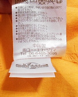 ㈱ユー・エス・ジェイ サイズ表記:M(チェスト:88-96) 肩幅:約47cm、脇下辺り:約50cm、袖丈:約20.5cm、総丈:約72cm 素材:綿100% お色:オレンジ ⇒お色の再現は素人のデジカメ撮影では限界が御座いますので、強いこだわりのある方のご入札はどうぞお控えください。本品はお色の再現が出来ておりません。又、撮影は暖色系ライトの元で行っており、白飛びし実物よりきれいめに写っております。ご了承下さい。 こちらは委託品に付き購入価格及び保管期間・状態は不明です ⇒一般的な保管臭、保管皺、洗いざらし感、型崩れ感があります あくまでも自宅保管のユーズド品です。当方では特別なメンテナンスは行っておりません。古着にご理解のある方のご入札をお待ちしております お気に召さない香りや保管臭、(室内暖色系電灯での確認に付)目の届きにくい場所の汚れ・しみ・擦過傷等の見落としがある場合があります。気になる方はご入札をお控え下さいませ。 ユーズド品ご理解の上ご入札下さいませ。 返品は承っておりませんので、予めご了承下さいませ。 ご落札後のご連絡・ご入力開始は48時間以内、ご決済は5日以内にお願い致します。 どうぞ宜しくご検討下さいませ。 !)普通郵便:定形外発送をご選択の場合、搬送時の紛失及び破損等につきましては補償致しかねます。又、土日祝配達なし、残業軽減等の事情により、以前よりお届けまでに時間がかかっている様です。予めご了承下さいませ。 !)サイズダウンの為小さく梱包させて頂きます。 | |||