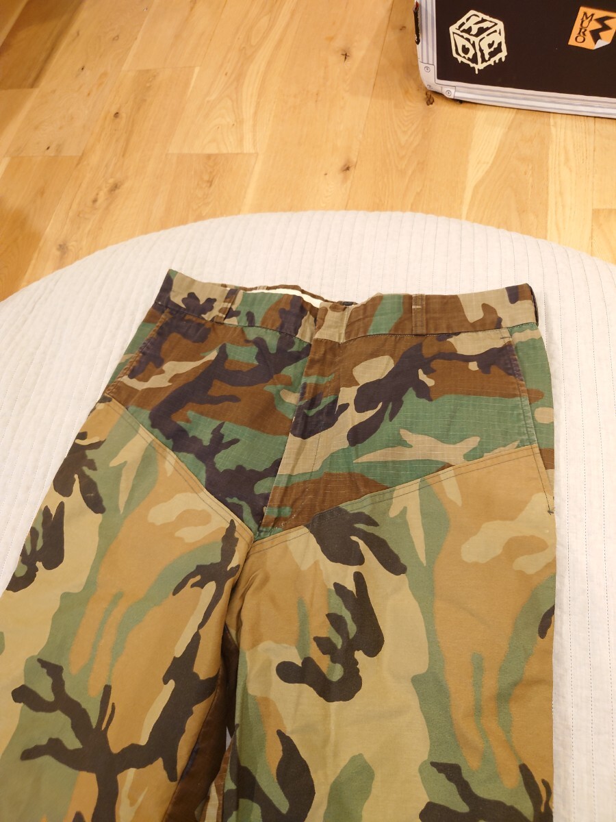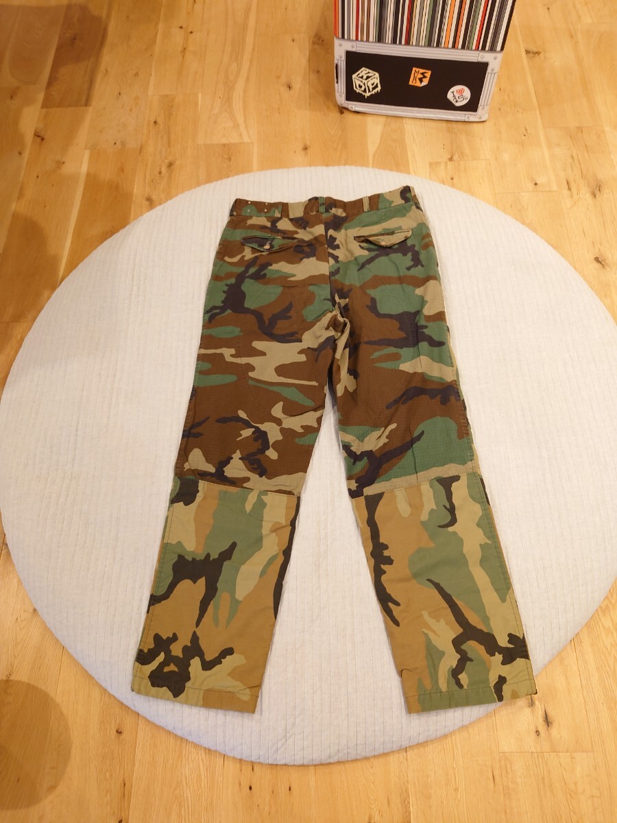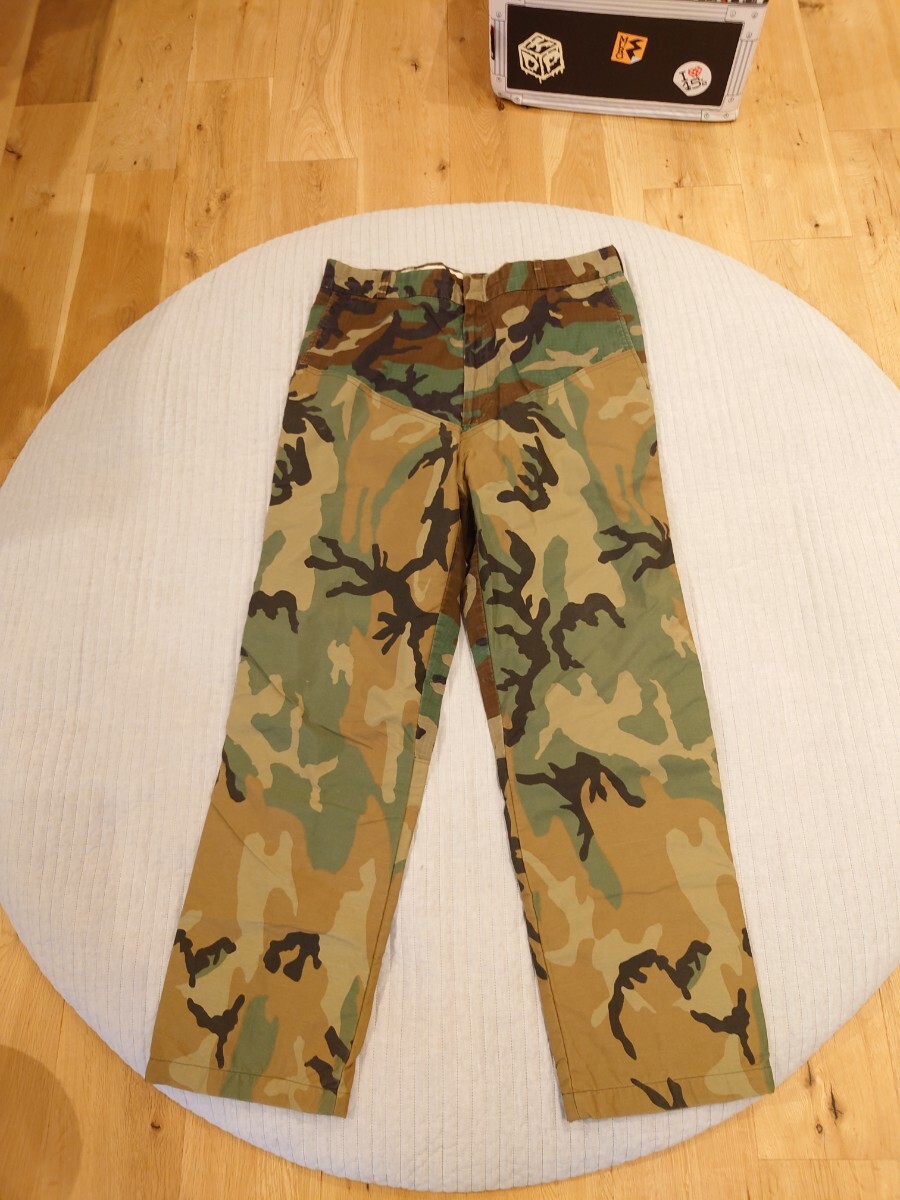 1980年代〜のLLビーンのハンティングパンツです。特筆すべきはウッドランドカモ柄が2種類使用されている所でしょう。下記の通りディテール盛り沢山です。状態もミントコンディションで、サイズも良いです。お探しだった方のご入札をお待ちしております。
