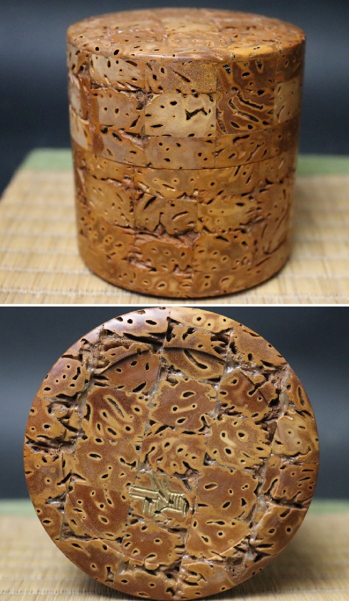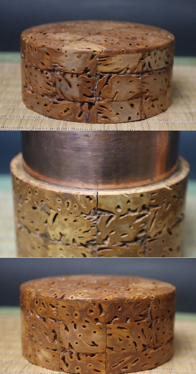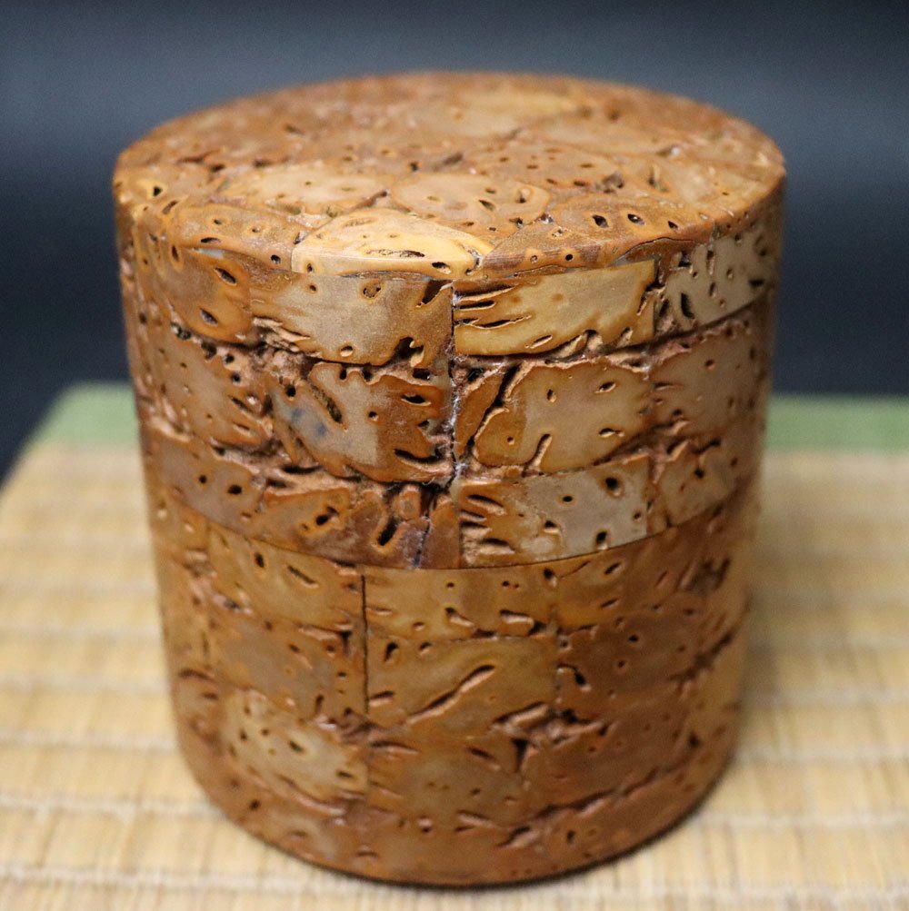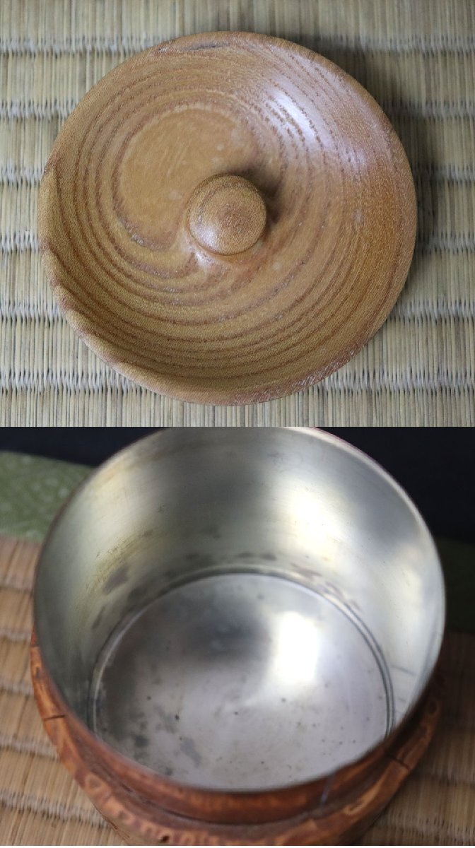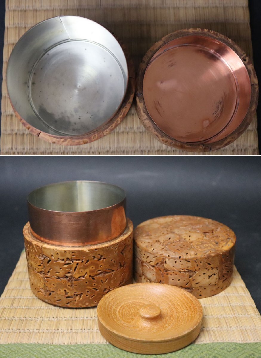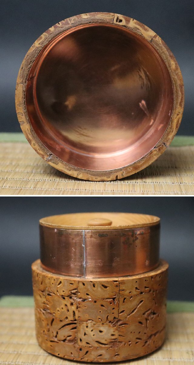 ■W-4810■桃の実 茶筒 筒/純銅製 山形鴨田木工所 鴨田貞作 工芸品 現状販売 桃の実工房■