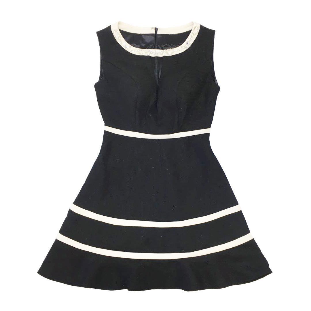 バイカラー/ デコルテビジュー/ カットアウト/ ノースリーブ/ ジャガード/ フレア/ ミニドレス/ キャバドレス