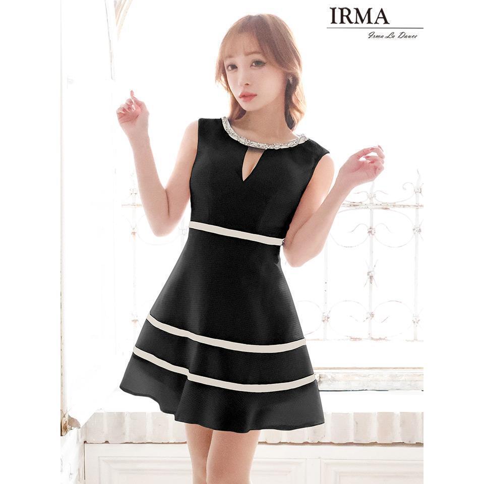 IRMA イルマ デコルテビジュー カットアウト ジャガード フレア ミニドレス
