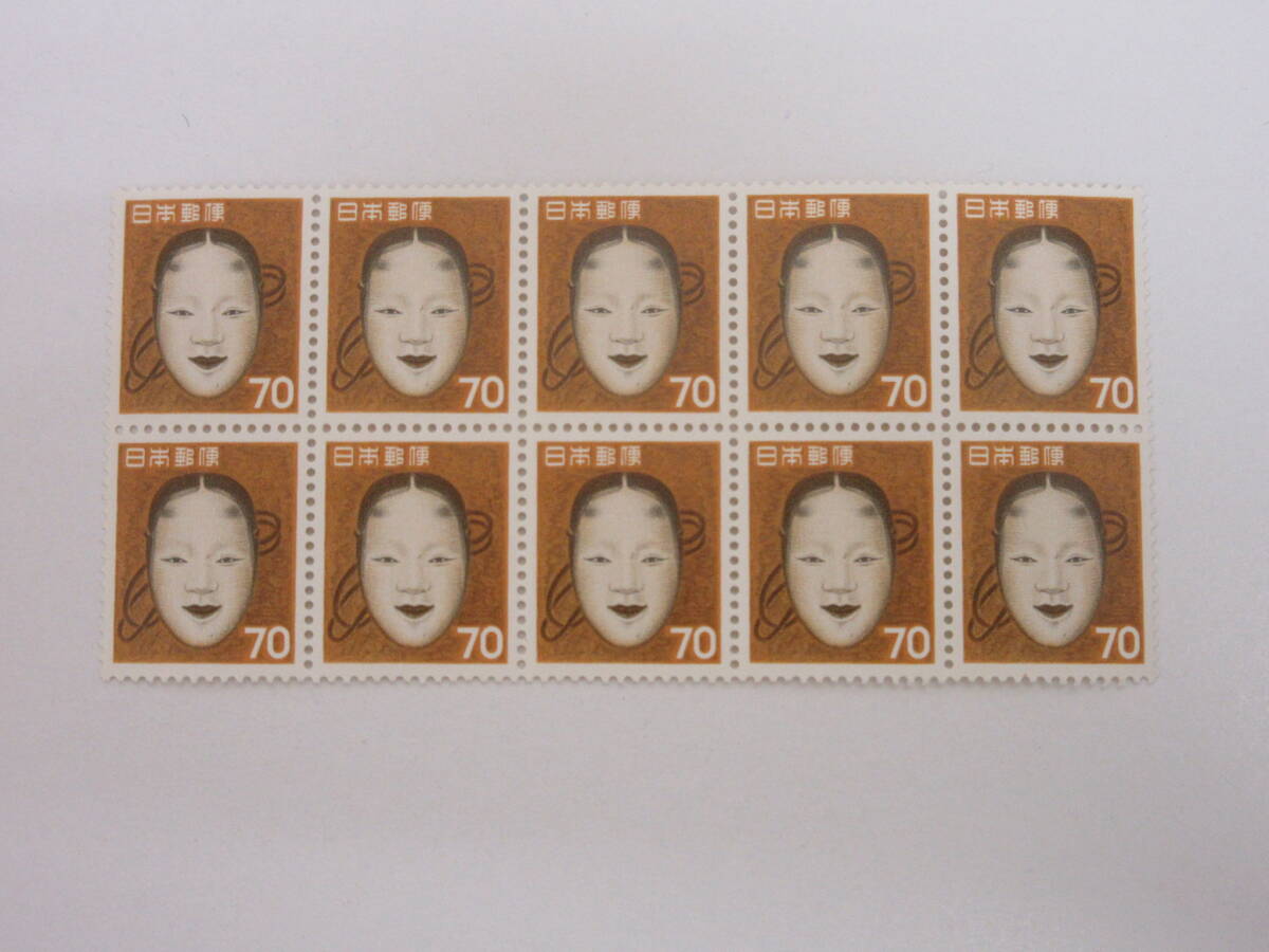 切手 / 第2次円単位 能面 70円 10枚ブロック / 未使用