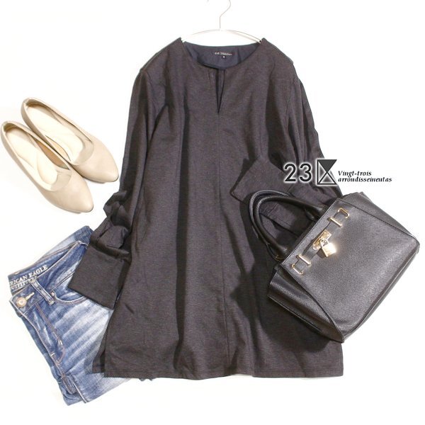 美品 オンワード樫山 23区 綺麗め ジャージーストレッチ カットソー 38号 M 秋 冬 25D09