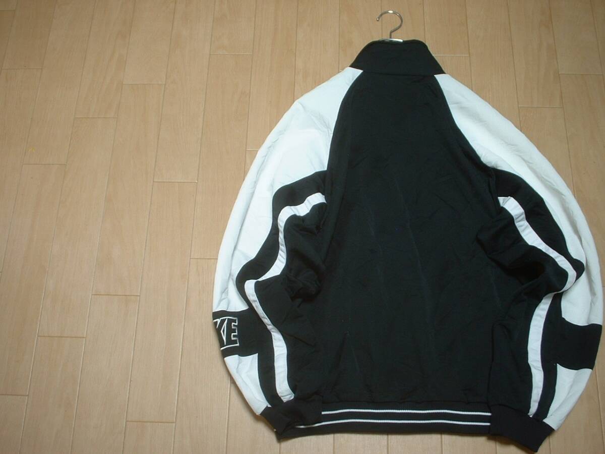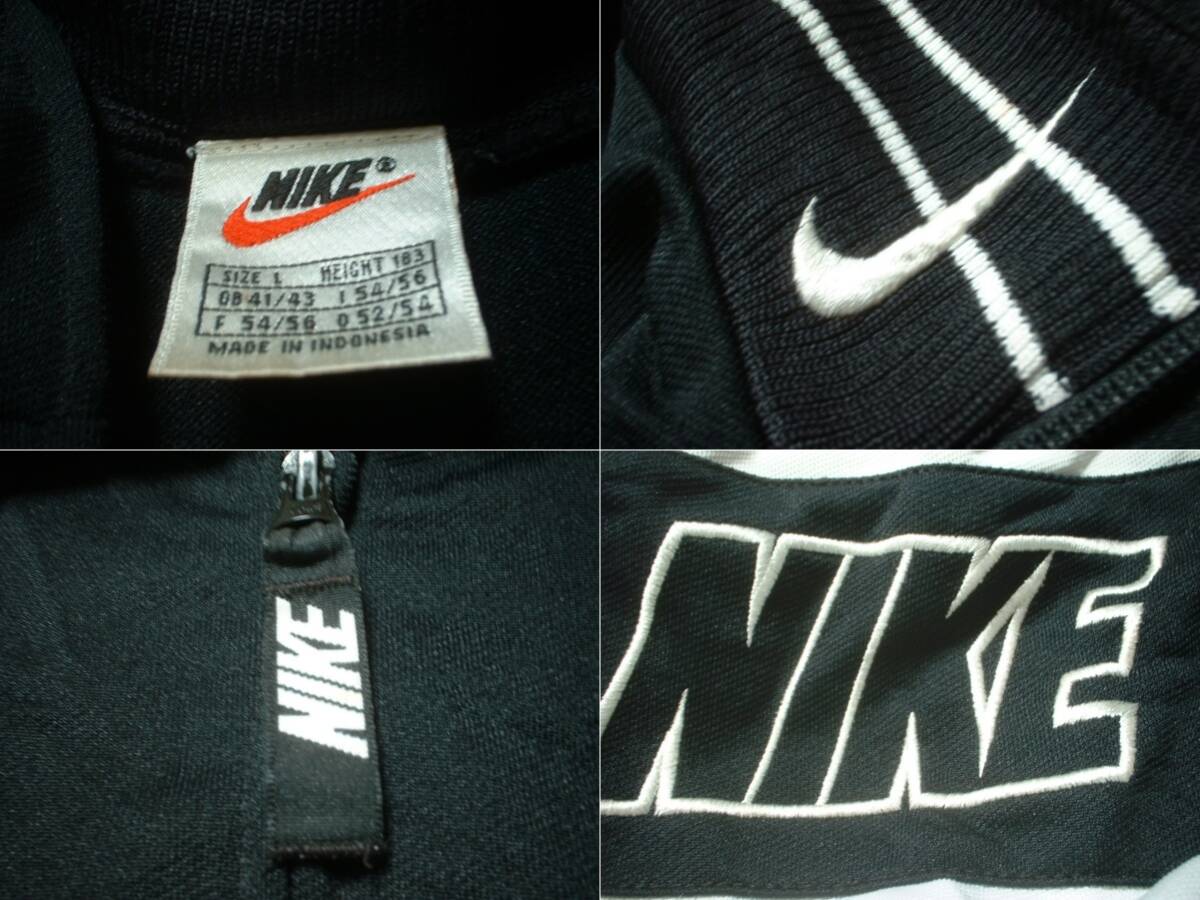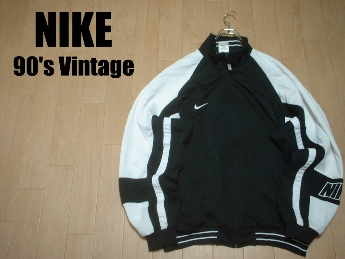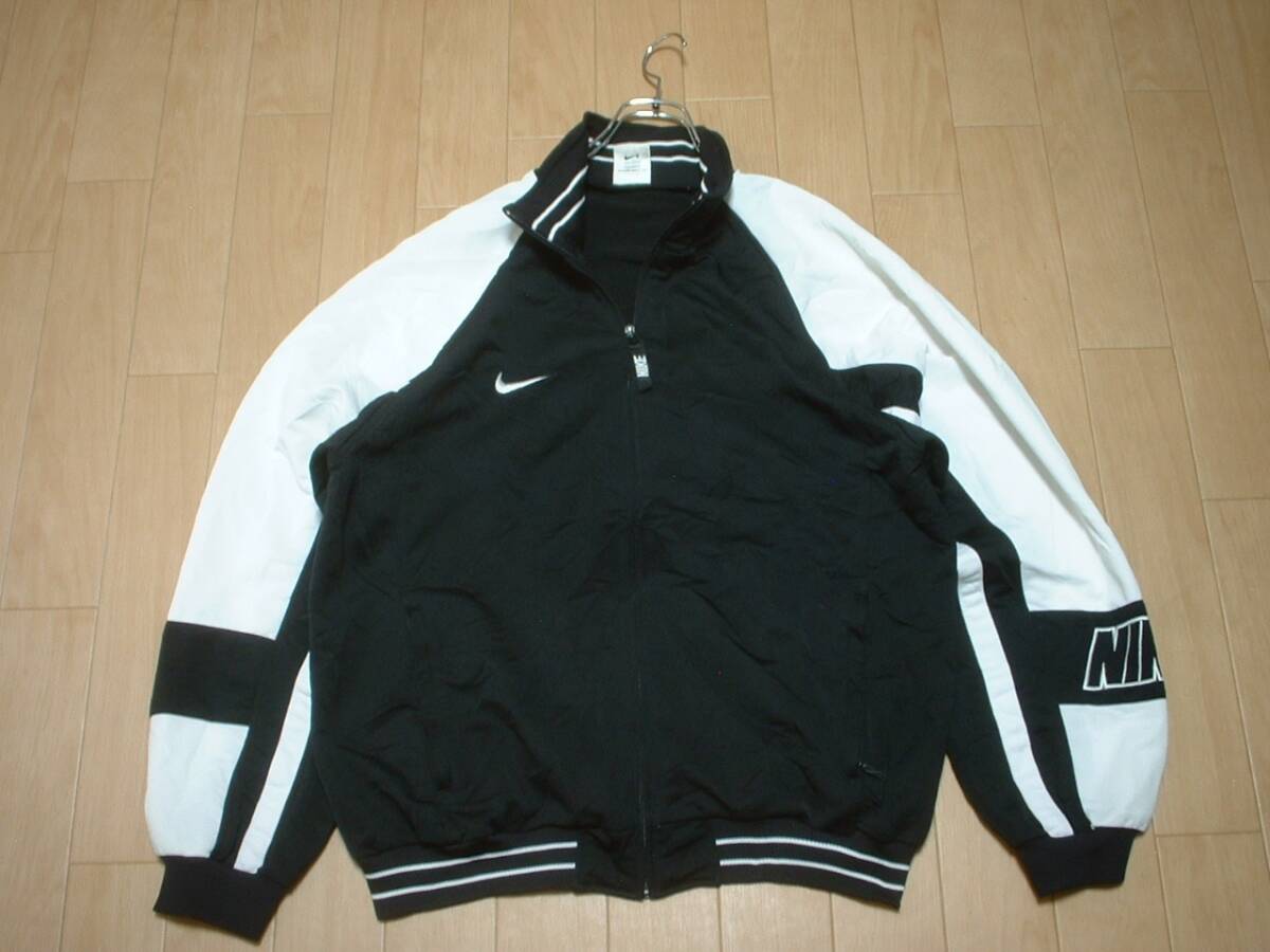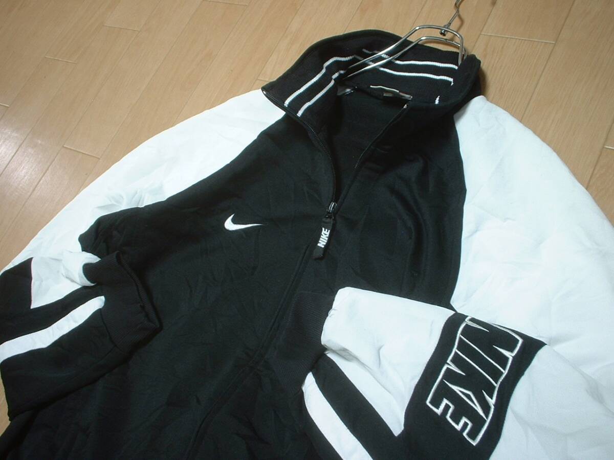90sビンテージNIKEスウッシュ刺繍&アームロゴ刺繍トラックジャケットL正規ナイキSWOOSH黒ブラック白ホワイトVINTAGEジャージトップ銀タグ