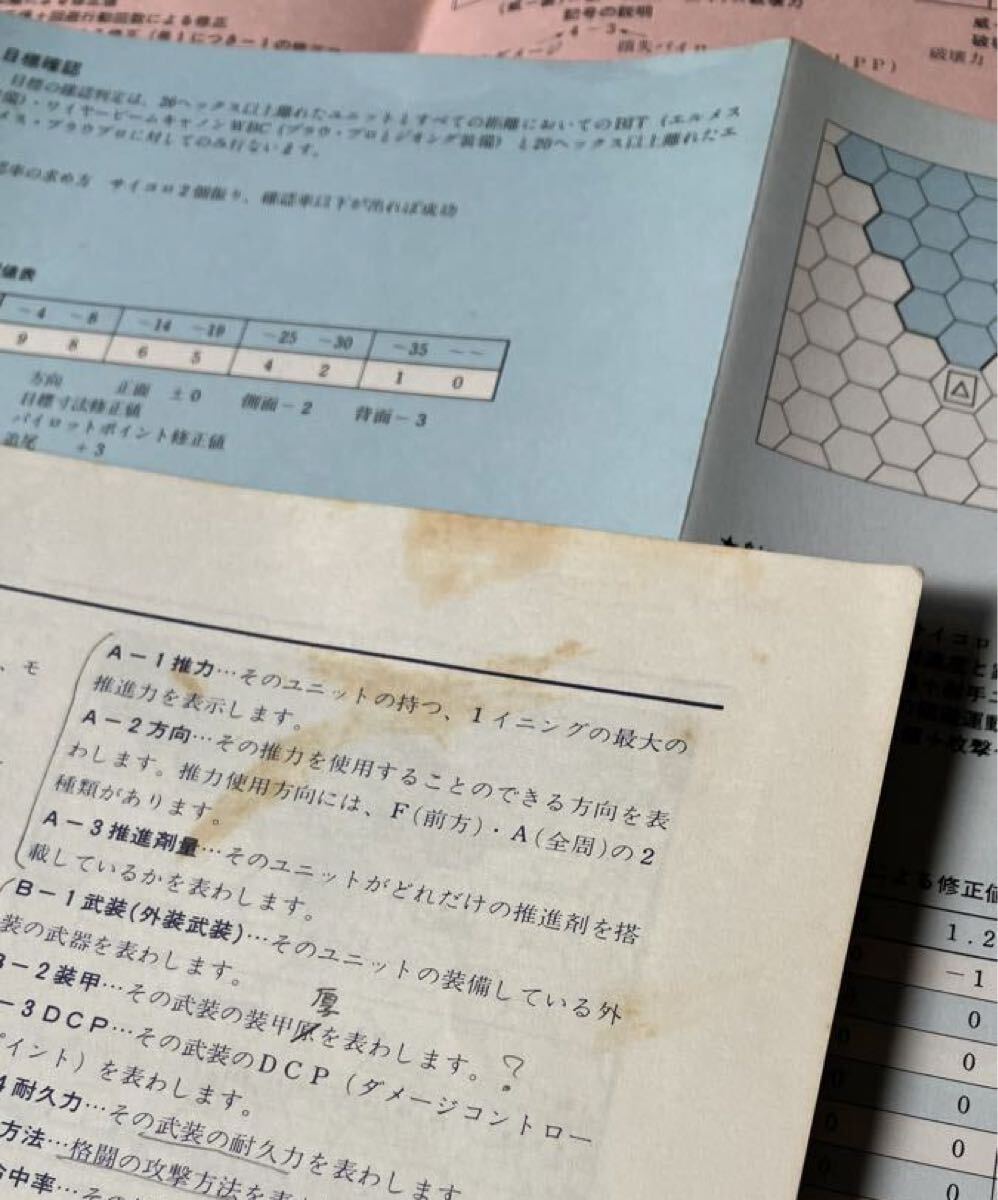 外箱、ルールブック、マップ、チャート(データ一覧表)、ユニットデータカード、サイコロなどは全て揃っていますが、それぞれシミ、色褪せ、擦れなど経年の傷みがあります。写真をご確認下さい。
