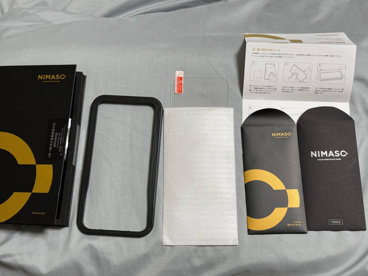 ◆NIMASO ガラスフィルム iPhone15ProMax用(6.7インチ) 強化ガラス 保護フィルム ガイド枠付き 1枚