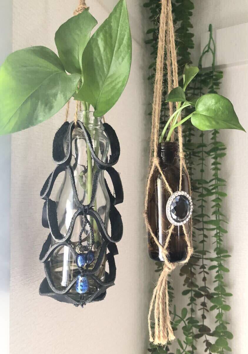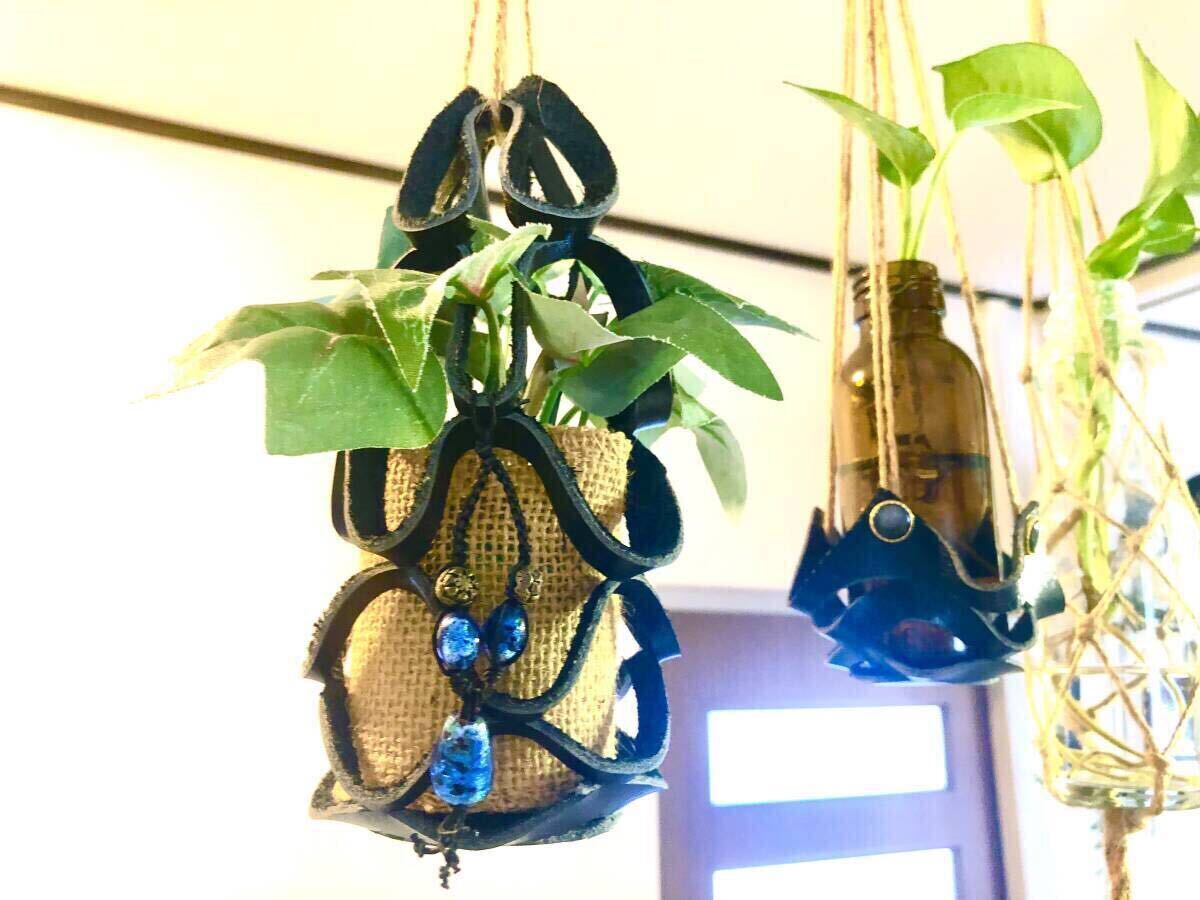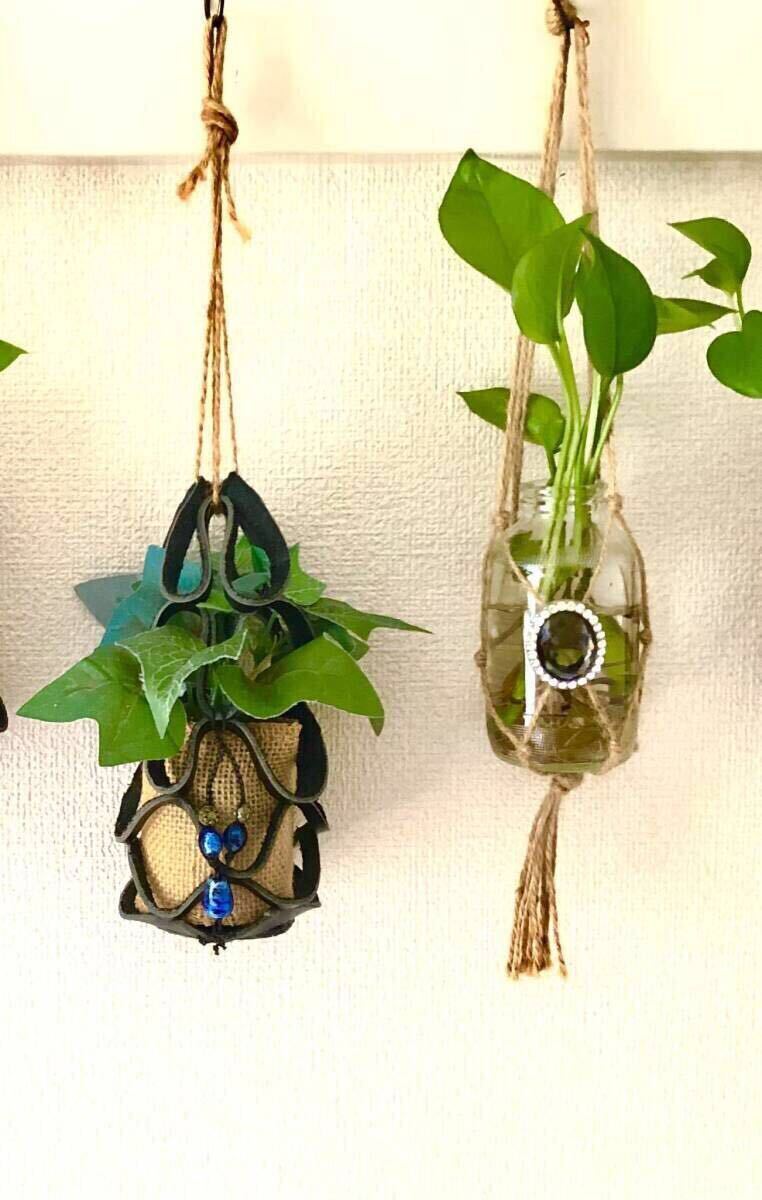 【植物は含みません】プラントハンガー(レザーネット・マクラメ編み) 観葉植物 植物ハンガーネット インテリア ハンドメイド