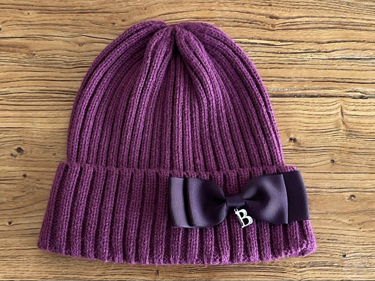 ★ 使用2-3回★【 べべ bebe 】★ ニット帽 帽子 ★ リボンがかわいい Bマーク ★ サイズ M 52〜54 ★ 冬 あったか 女の子 ニットキャップ