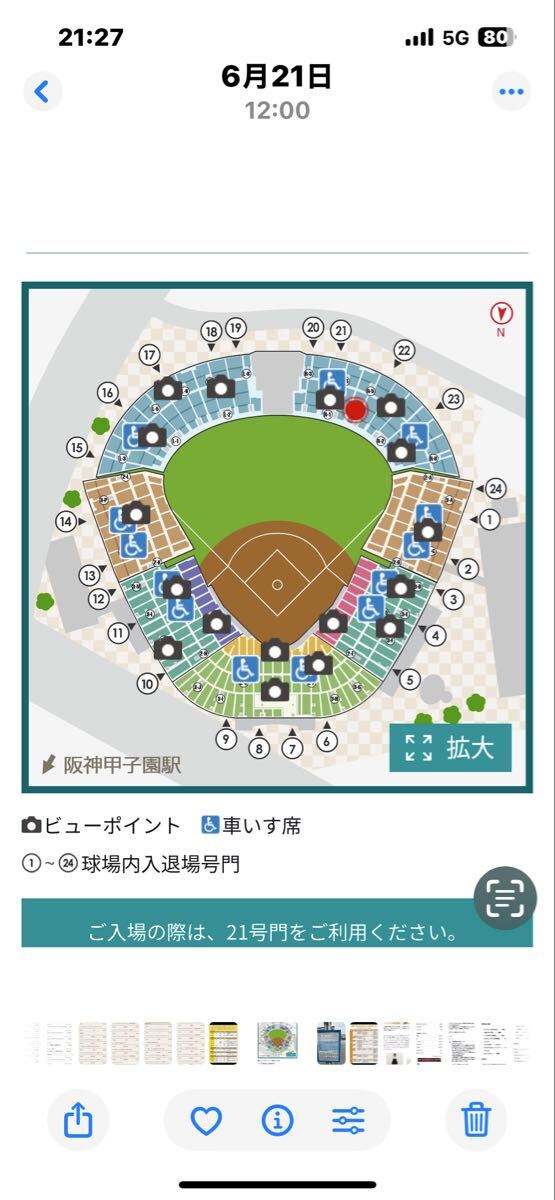 ・予定されていた試合日が雨天等でノーゲームとなる場合は、原則試合は翌日に順延となり、入場券は順次繰り下げて有効となります。
