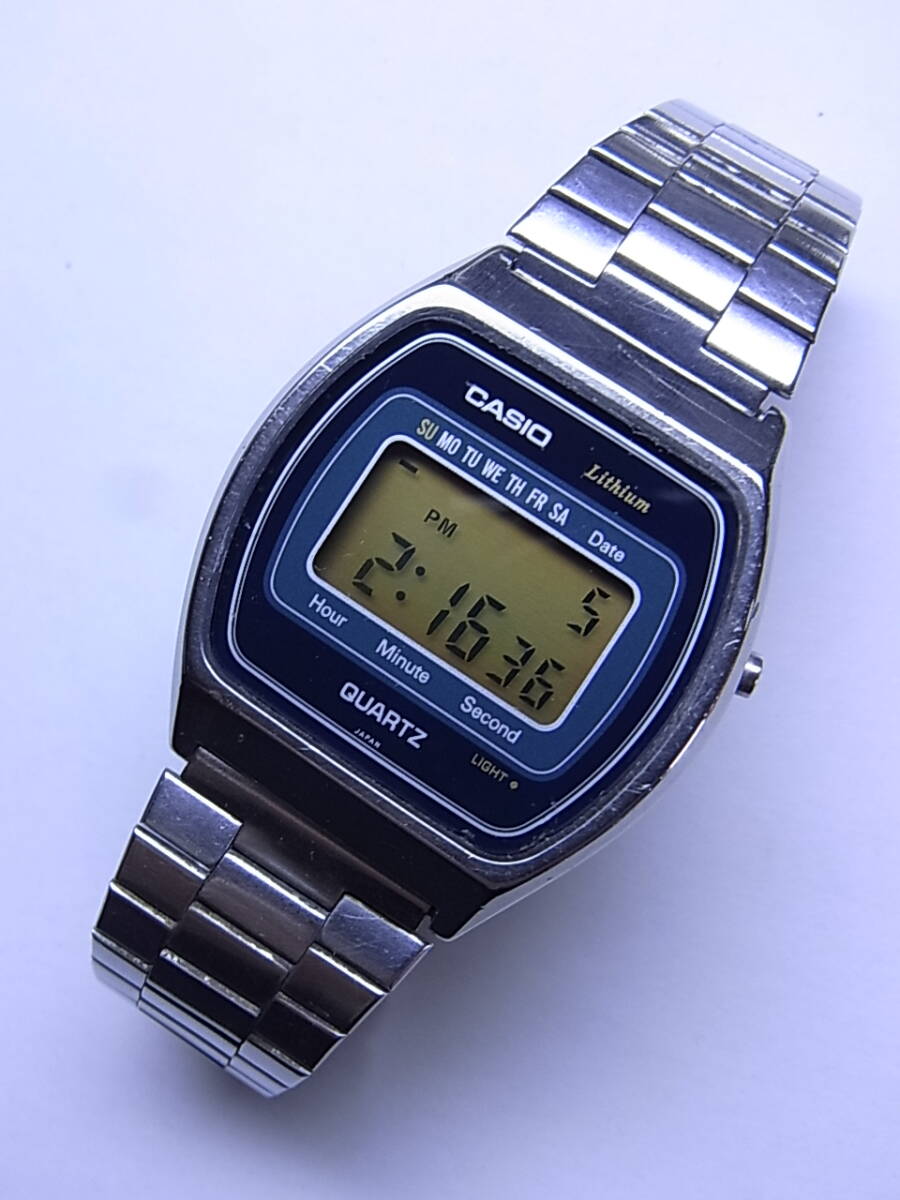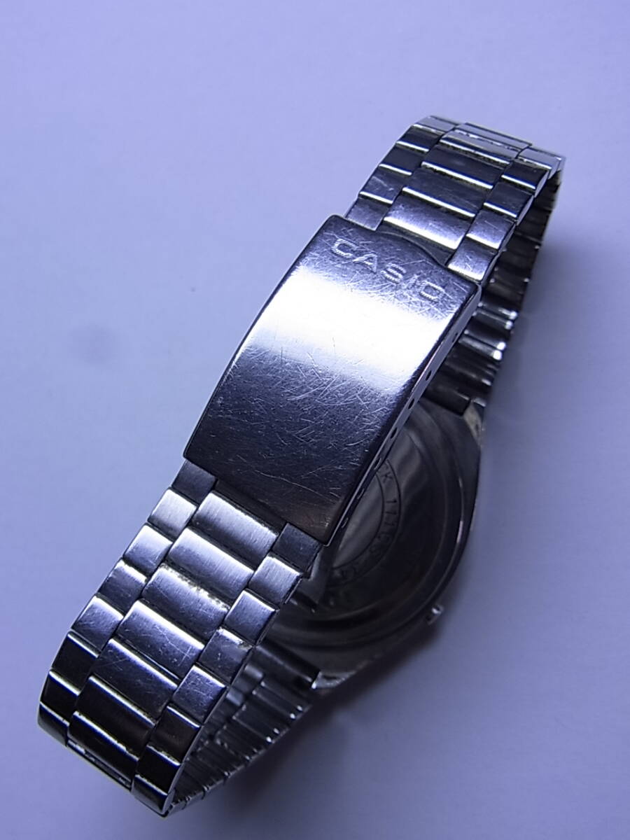 ビンテージのCASIOカシオメンズデジタルクォーツウォッチです。ガラス面はエッジに小チップがあります。ケースやブレスもスレ、スクラッチがあります。豆球のバックライトOK。簡易クリーニング済み。ケース横幅約36mm、腕周り現状約18.0cmでこれ以上大きくすることはできません。現在、電池も入っており快調に動いていますが、電池寿命は不明。中古品ですのでご不明な点はご質問頂き、十分ご納得のうえでご入札ください。安値スタートですので落札後の返品、クレームはご容赦願います。発送はゆうパック、レターパックプラス、ライト。なお、評価に「悪い」が多い方や新規の方の落札者に不払いが多いため、「悪い」評価が全体の3%以上ある方は入札しても削除させて頂きます。また新規の方、評価の少ない方もこちらの判断で削除させて頂くことがあります。