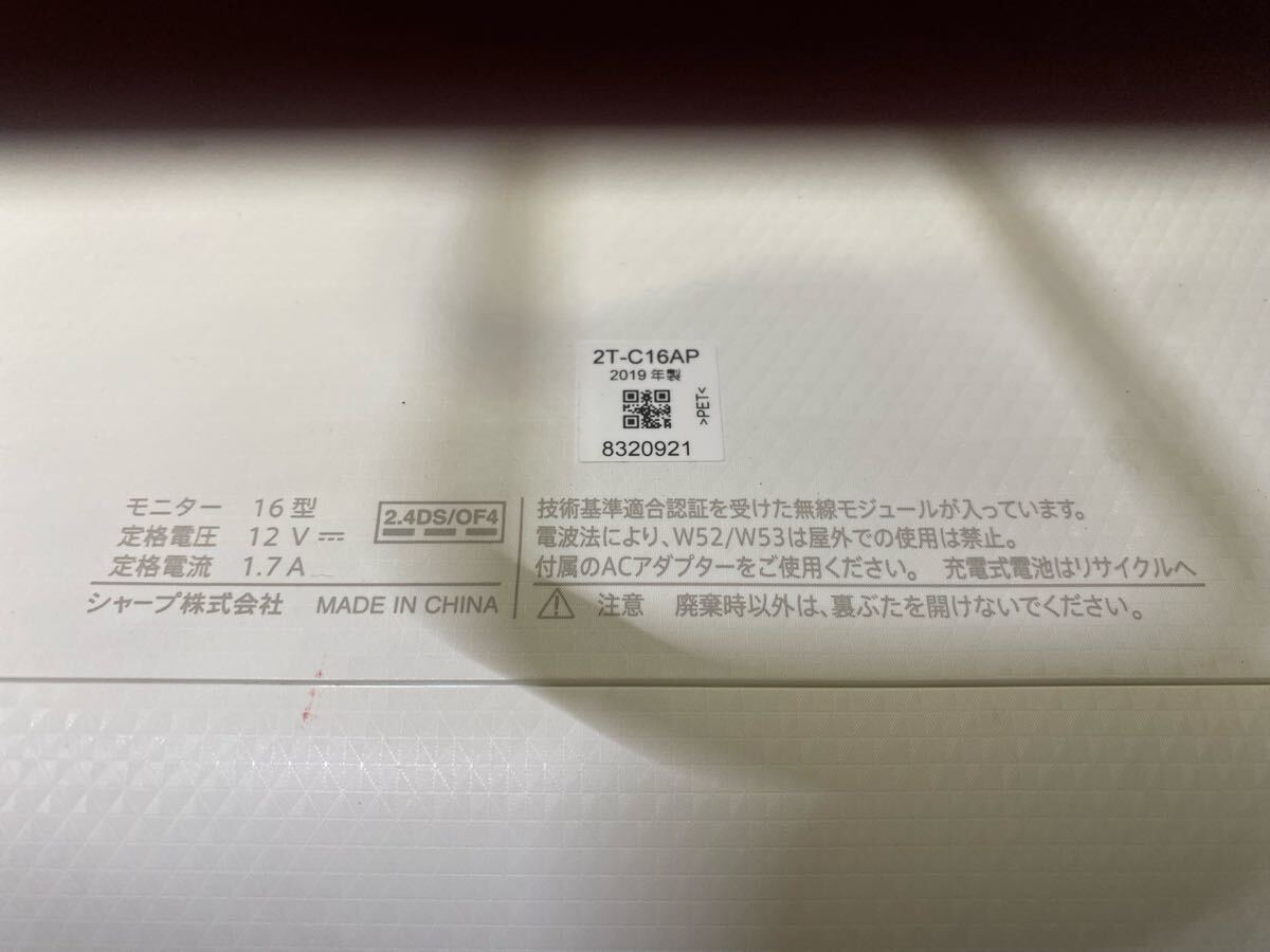 ジャンクシャープ 16V型 液晶 テレビ AQUOS 2T-C16AP フルハイビジョン 防水&ワイヤレス設計 2019年モデル SHARP アクオス