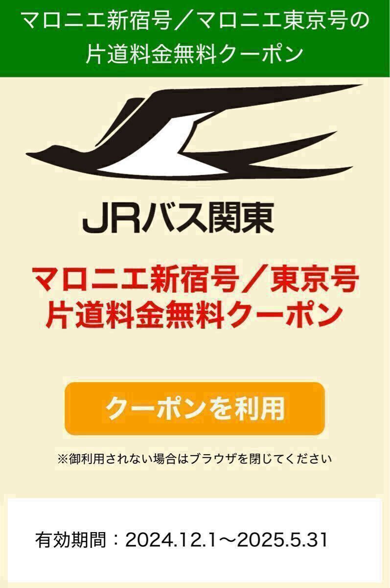 * ご予約の際は、JRE BANK特典の片道料金無料クーポンでご乗車することをお伝えください。なお、ご予約時に「クーポンを利用」ボタンは押さないでください。誤って押した場合はその場で「クーポン利用済」となり無効となります。