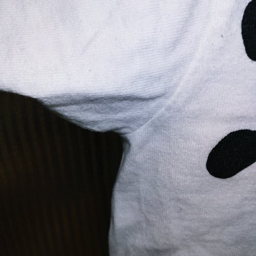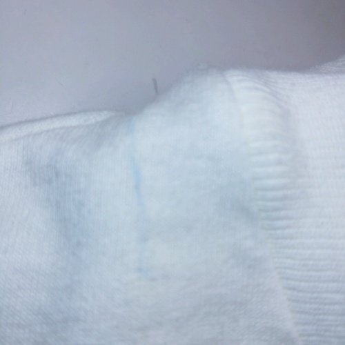 タグを切り取ったあとがあります。首回りに青い線の汚れあり。