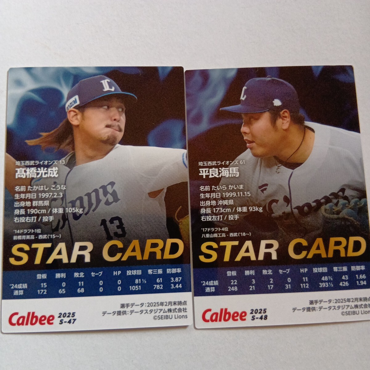 髙橋光成投手、平良海馬投手のスターカードセットになります!