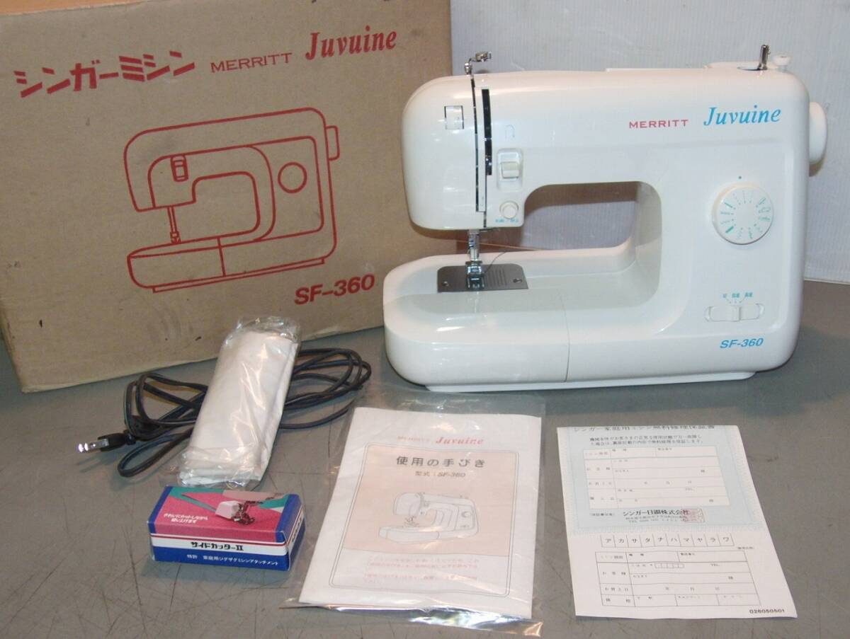 ミシン SINGER MERRITT Juvuine SF-360 シンガー メリット サイドカッターII付 コンパクトサイズ 2段階スピード 家庭用ミシン の出品です。 【商品特長】 ※メーカーHPより抜粋 SF-360は、SINGER(シンガー)社の家庭用電動ミシン「MERRITT Juvuine SF-360」の型番です。 コンパクトで持ち運びやすく、直線縫いやジグザグ縫いに対応した初心者向けモデルです。 SF-360の本体サイズ詳細 - 横幅:約35cm - 奥行:約14cm - 高さ:約28cm - 重量:約5.4kg 中古品(美品) 通電確認 OK (手元ランプ点灯) スイッチONでプーリー回転、針、アーム上下しました。 スピード調節できました。 取説書、付属品あり 実使用(縫い)チェックまでは出来ておりません。 さらに多くの画像をご確認できます。こちらをご覧ください 【出品内容】 画像に写っているものが全てです。 使用及び保管に伴う、キズ・汚れ等ございます。 商品の程度・状態は、掲載画像にてご確認下さい。 詳細な動作確認が出来ていない為、申し訳ございませんが、ジャンク扱いでお願いします。 ノークレームノーリターンでご理解をお願いいたします。 上記内容を十分ご理解頂いた上でのご入札お願いします。 神経質な方、程度を非常に気にする方はご入札をお控え下さるようお願いします。 お探しの方!この機会にいかがでしょうか? | |