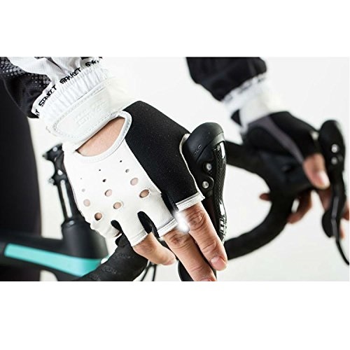 【売れ筋】サイクリングハーフグローブ シープホワイト 白 羊皮 L 自転車 手袋