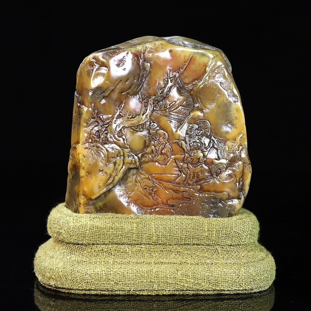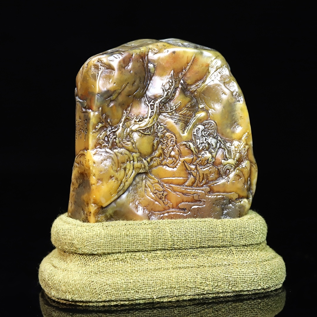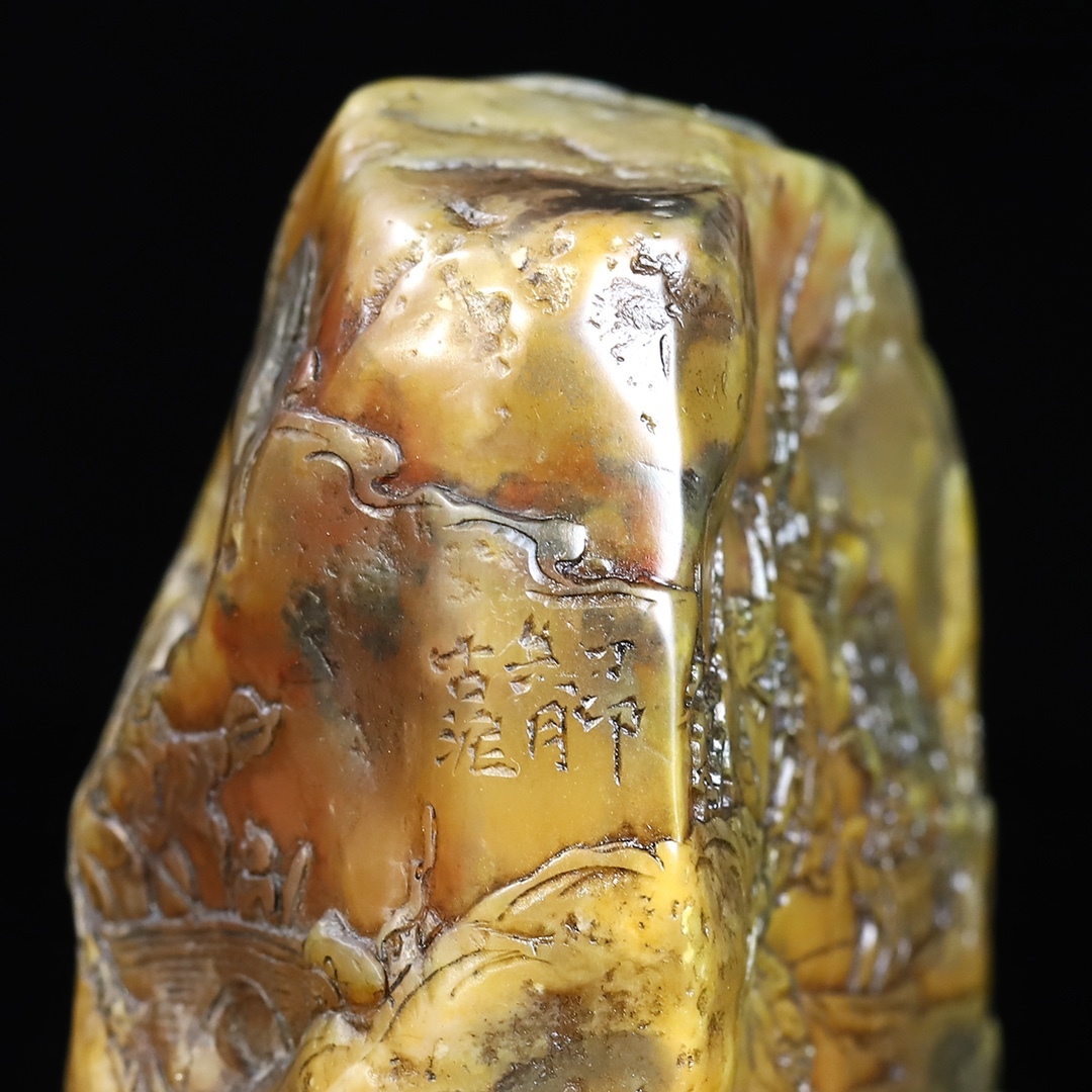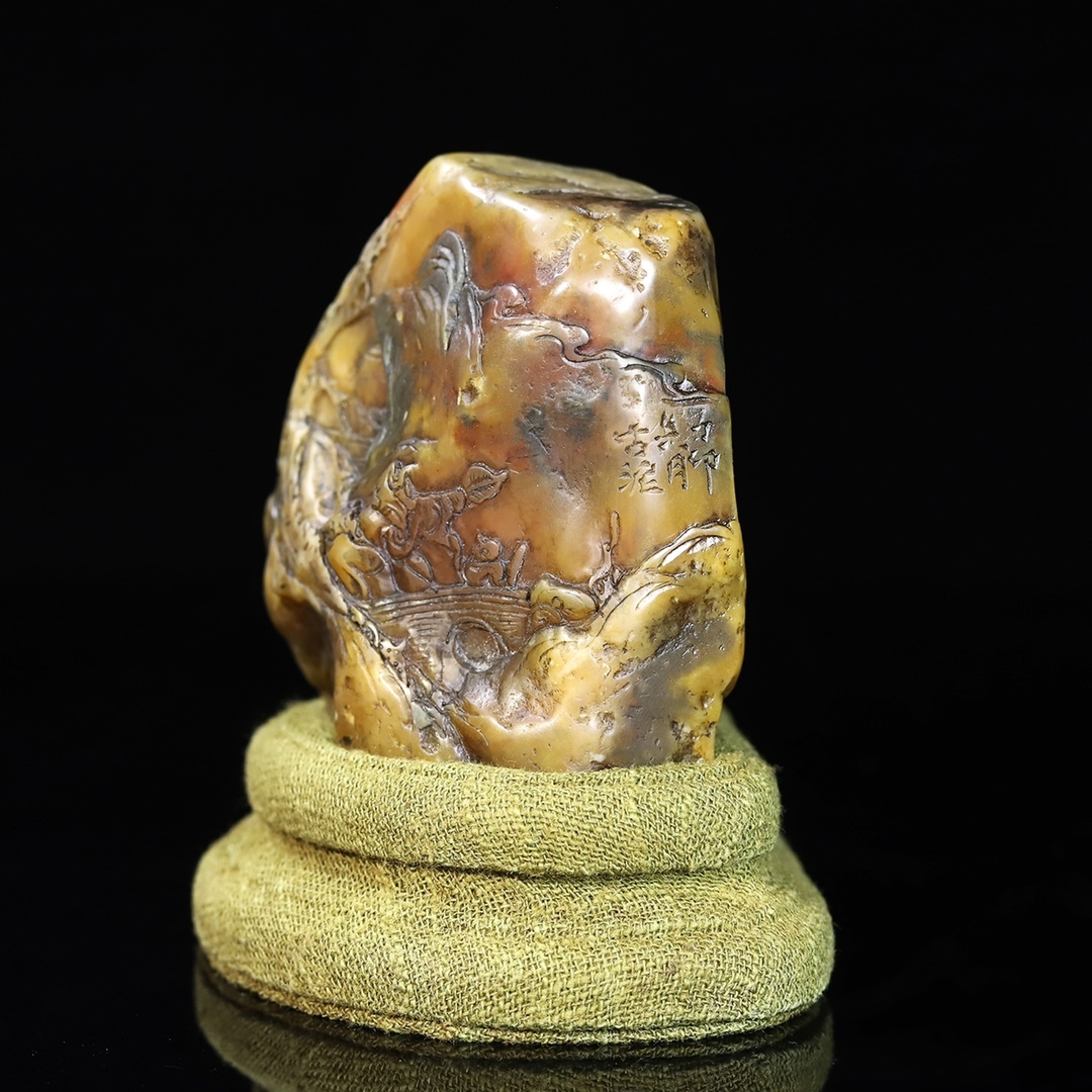 *珍品旧蔵* 【中国近現代篆刻家 古泥 本名:馬丹青】寿山原石 彫刻 山水人物紋 薄意印鑑 天然石 篆刻 古印材 極細工 中国古玩 骨董品 H410