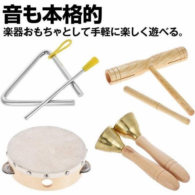 セット内容: タンバリン*1 ウッドブロック*1 トライアングル*1 ハンドベル*1 ハンドタンバリン*1 収納バッグ*1