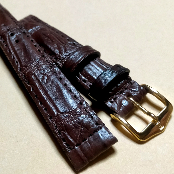 18㎜/本革クロコダイル■ 茶系色■金尾錠 /筋竹符鱗/ 11☆送料込//即決