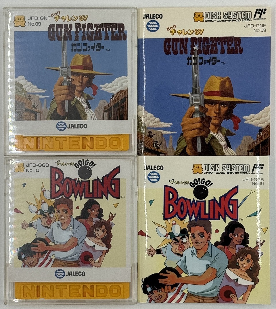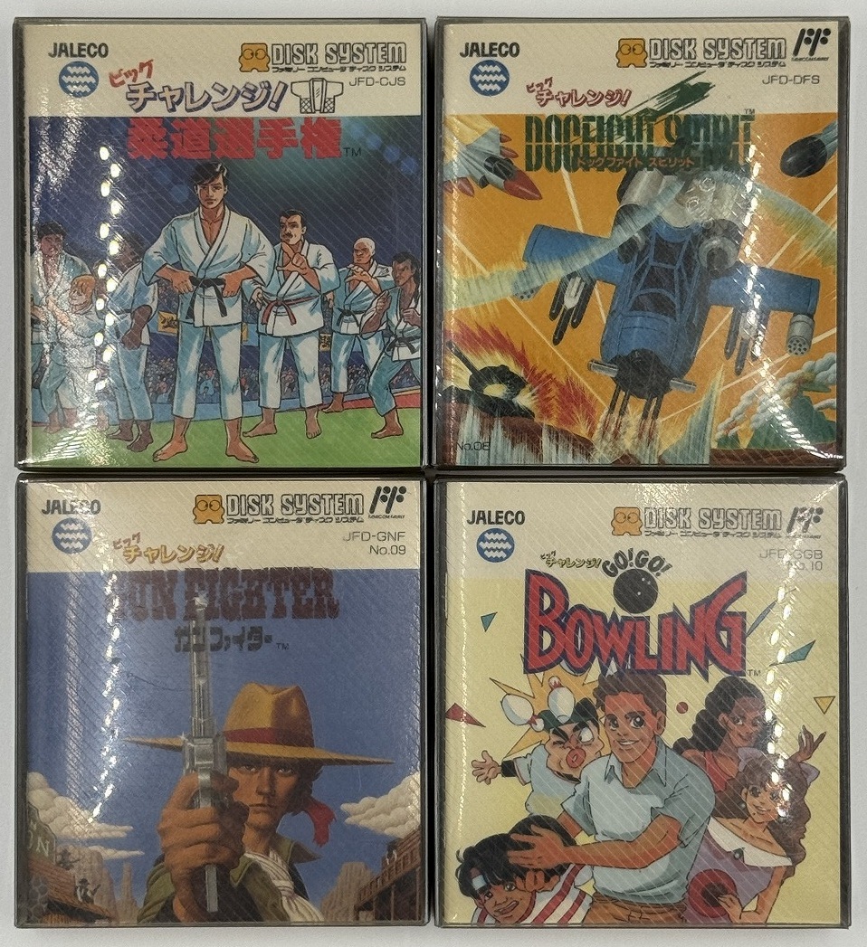 JALECO/ ジャレコ:ビッグチャレンジ! 柔道選手権/ ドッグファイト スピリット/ ガンファイター/ GO!GO!ボウリング FCD4枚SET 箱付き中古